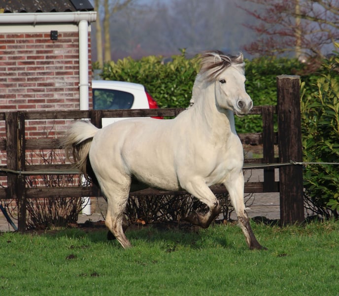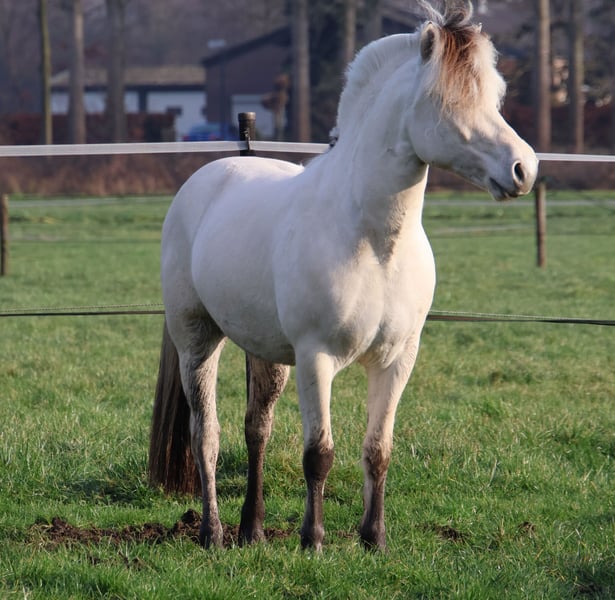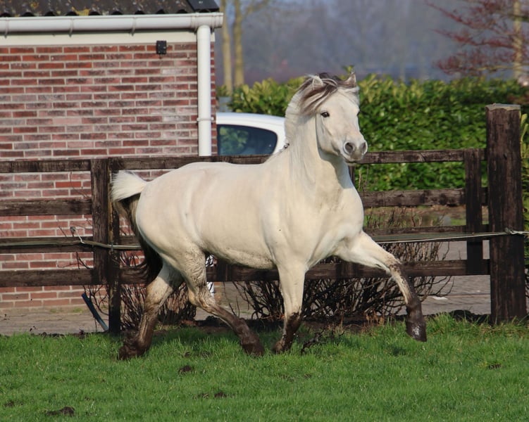 Utis ist ein schöner, gut gebauter drei-Jähriger Weißfalbe Fjord Hengst. Er kann sehr gut bewegen! Ende 2025 ist er in Wickrath gekört. Utis ist einen braven Hengst im Umgang und ein intelligentes Pferd, das gerne arbeitet. Er ist leicht gefahren im Gespann. Er ist jetzt 1,43 m groß. Wenn gewünscht kann er gelegt werden.