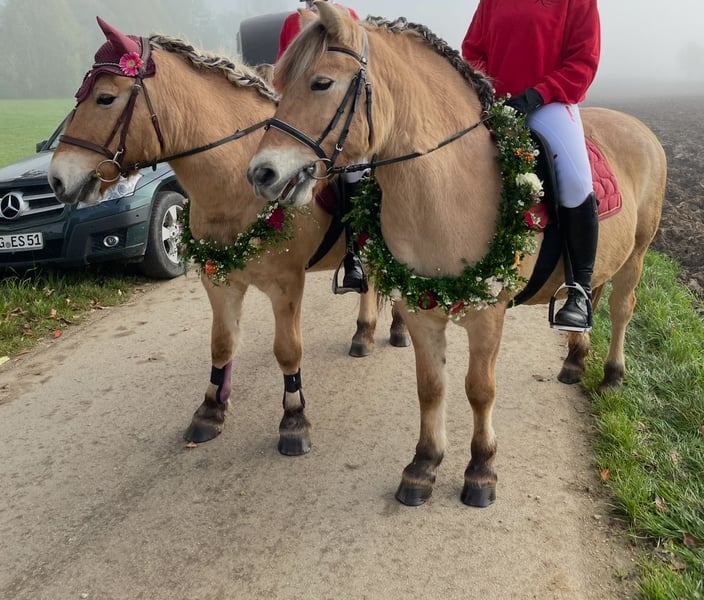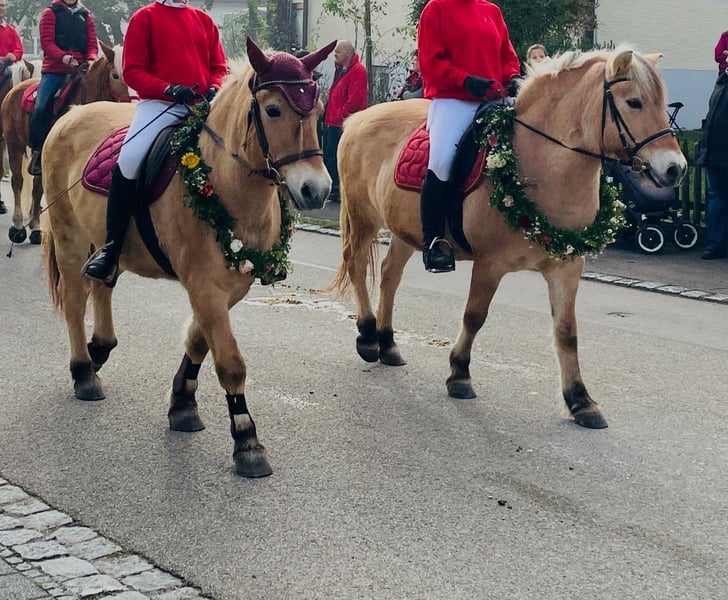 Zum Verkauf stehen zwei ausgesprochen liebe und zuverlässige Norweger Stuten, die wir nur in beste Hände abgeben möchten. Luna (Jahrgang 2002, Staatsprämienstute) und Geisha (Jahrgang 2004) besitzen ein Stockmaß von jeweils etwa 140 cm und überzeugen durch ihren ausgeglichenen, freundlichen Charakter. Beide Stuten sind kinderlieb, geduldig und dadurch hervorragend für den therapeutischen Bereich geeignet. Sie sind den Umgang mit Kindern gewohnt, bewegen sich sicher und entspannt im Gelände und gehen gerne und zuverlässig ins Gelände – ob allein oder in der Gruppe. Luna und Geisha sind unkompliziert im Alltag, brav beim Putzen, Satteln und Aufsteigen, sowie schmiedefromm und verladefromm. Sie kennen Offenstallhaltung wie auch kleinere Herden und fühlen sich in ruhigen, liebevollen Umgebungen besonders wohl. Beide Stuten werden inklusive Sattel und Trense abgegeben. Uns ist sehr wichtig, dass sie gemeinsam oder in artgerechte Haltung mit viel Zuwendung und Zeit wechseln dürfen, daher wünschen wir uns interessierte Menschen, die ihre ruhige, freundliche Art zu schätzen wissen.