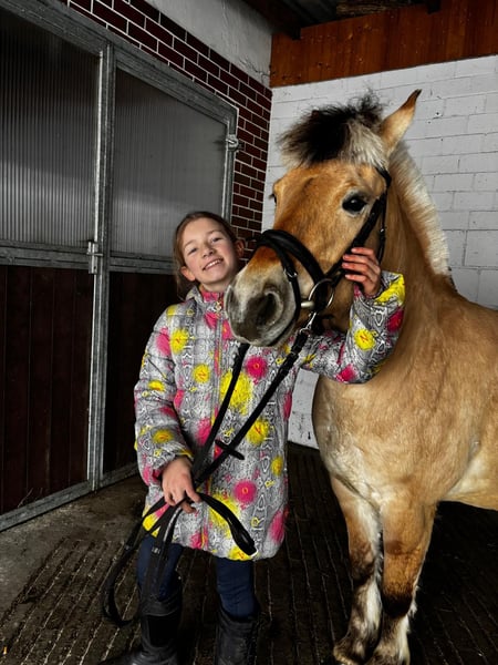 Astra ist eine äußerst liebe, brave Fjordstute. Sie ist einfach von Anfängern und Kindern zu händeln. Sie kennt Gelände, Platz und auch Reithalle. Ein und Zweispännig gefahren,auch im Straßenverkehr. Schmiede und Verladesicher.