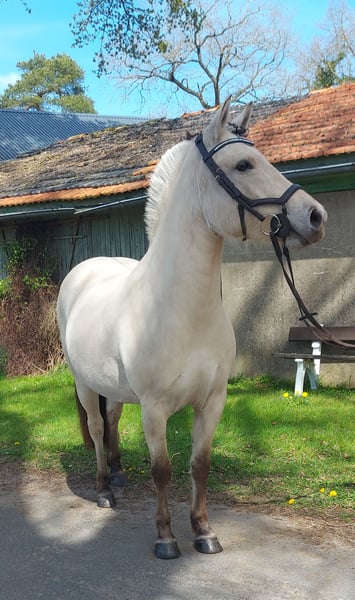 Bildschöne, bezaubernde weißfalb Fjordstute sucht 5-Sterne-Zuhause. Fine ist eine hübsche, artige und sehr verschmuste 7jährige Stute mit bestem Papier (). Im Offenstall im Herdenverband aufgewachsen, regelmäßig geimpft, entwurmt, dem Schmied vorgestellt (barhuf) und Zähne gemacht (zuletzt Juni 2025). Super artig unterm Sattel, im Schritt und Trab sicher geritten, am Galopp und der Lenkung arbeiten wir noch, sitzbequem. Kennenlernen und Probereiten jederzeit (nach Terminabsprache) möglich. Sie ist ca 141cm groß. Fine ist keine Schlaftablette, hat go. Ist aber gut händelbar. Hatte 2025 ein bildschönes Stutfohlen vom Quarter Horse Hengst Mobsters Snow Gun. Hat problemlos aufgenommen, alleine abgefohlt und ist eine tolle Mutterstute