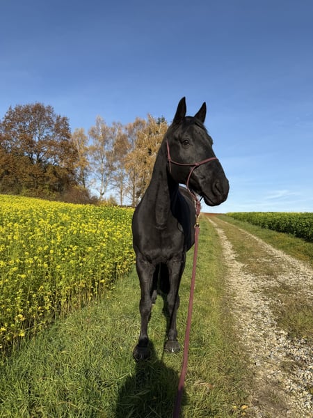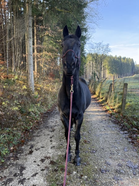 Schweren Herzens habe ich die Entscheidung getroffen nach dem passenden Menschen für mein 9 jähriges polnisches Warmblut, Stockmaß ca 1,66m zu suchen. Dieser hübsche Kerl Namens „Leo“ ist ein unfassbarer toller Partner der die Nähe zu seinem Menschen sucht und Spaß an abwechslungsreicher Beschäftigung hat. Er ist super neugierig und ein kleiner Clown, er bringt die Menschen in seinem Umfeld schnell zum Lachen und will gefallen. Er steht in einem Offenstall mit Wallachen, zeigt sich als sehr sozial und ranghoch in der Herde der gerne mit seinen Kumpels spielt. Bei der Dressurarbeit hat er Spaß, lässt sich gut motivieren und will seinem Reiter gefallen. Leo ist kein Anfängerpferd und benötigt einen einfühlsamen und sicheren Menschen an seiner Seite! Aktuell befindet sich Leo aufgrund meinerseits nicht voll im Training! Es gilt absolut Platz vor Preis! Aku wurde letztes Jahr gemacht, dabei wurde das hintere rechte Bein geröntgt da er dort ein leichtes Überbein hat welches ihn nicht beeinträchtigt. Er ist vorne beschlagen und super anständig beim Hufschmied/Tierarzt/Physio. Für das Probereiten wird eine Gebühr von 30€ berechnet, diese wird beim Kauf angerechnet. Passendes Equipment kann gegen Aufpreis mit erworben werden.