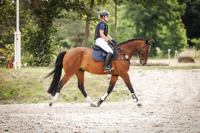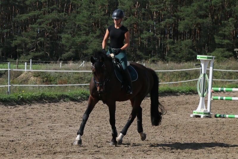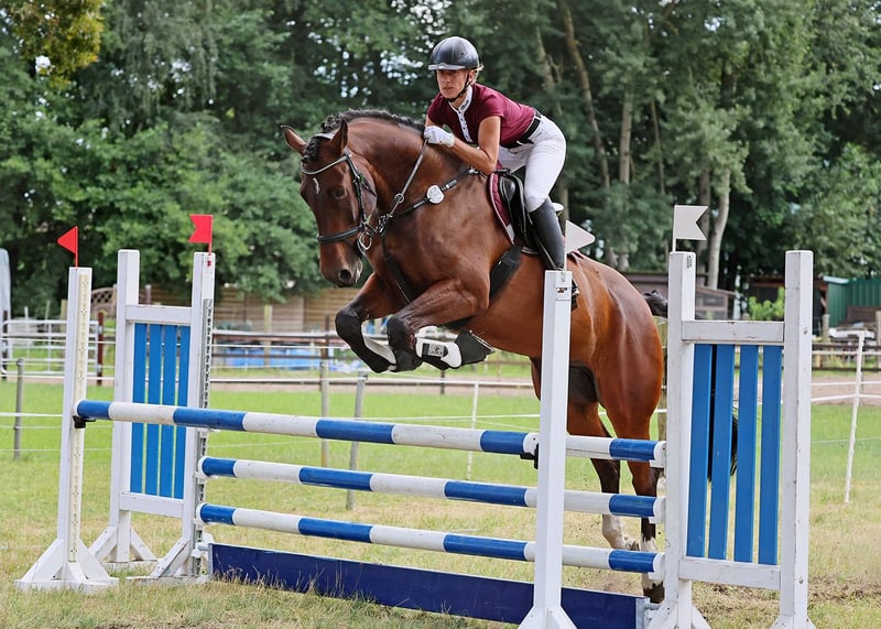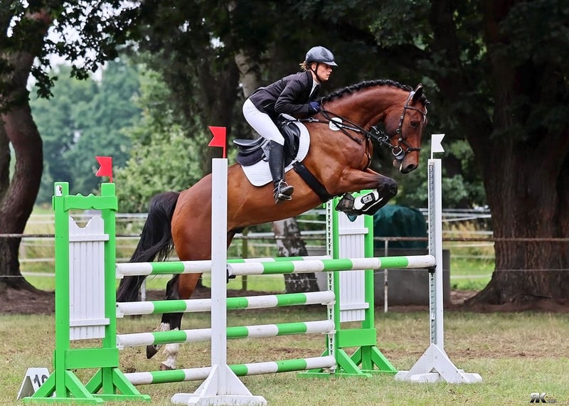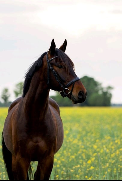 Zum Verkauf steht hier ein charmanter brauner polnischer Warmblut Wallach, mit Holsteinischer Abstammung, geboren im Jahr 2016, mit einem Stockmaß von 170 cm. Der gut gerittene Freizeitbegleiter überzeugt durch sein angenehmes Temperament und seine zuverlässige Art. Dank seiner ausgeglichenen Natur ist er sowohl für fortgeschrittene Reiter als auch für ambitionierte Freizeitreiter bestens geeignet. Der Wallach ist gesund, gepflegt und derzeit vorn Beschlagen. Er ist bereits im Bereich Springen A* gewonnen und A** platziert, trainiert bereits auf L Höhe. Im Vielseitigkeitsbereich hat er bereits E gewonnen und ist Geländepferde A gelaufen. Er hat eine spitzen Arbeitseinstellung, egal ob Dressur, Springen oder Gelände. Verkauft wird er aus gesundheitlichen Gründen meinerseits, weshalb er seit letzten November auch nur ca. 3x wöchentlich in Arbeit steht. Aktuell steht er im Offenstall in einer Gruppe, kennt aber auch Boxenhaltung. Schmiede und Verladefromm ist er ebenfalls. Gesucht wird für ein ein 5* Zuhause mit möglichst einer Bezugsperson. Ein Verkauf an Händler und Schulbetriebe ist ausgeschlossen. Eine AKU aus 2019 liegt vor, eine aktuelle kann gern vom Käufer übernommen werden.