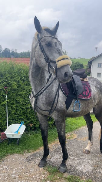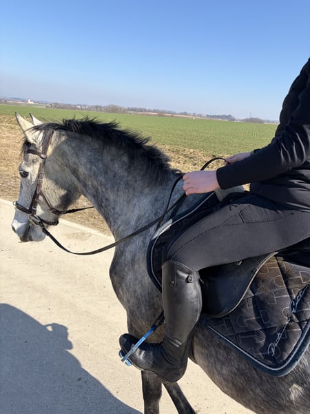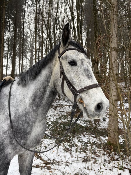 Schweren Herzens suche ich für meinen 4-jährigen Wallach, ein neues Zuhause. Er ist ein Polnisches Sportpferd, väterlicherseits KWPN gezogen, mit interessanter springbetonter Abstammung. Er ist ein großrahmiger, schicker Wallach mit angenehmem Wesen, viel Ausstrahlung und einem tollen Kopf. Er wurde bei uns in Ruhe und ohne Druck aufgebaut und zeigt sich dabei sehr ehrlich, lernwillig und menschenbezogen. Unter dem Sattel ist er seit ca. 4–5 Monaten richtig in Arbeit. Wir haben den Schwerpunkt bewusst auf Gelände, Vertrauen und Alltagssicherheit gelegt. Er geht allein und in der Gruppe brav ins Gelände, ist gut händelbar und zeigt sich auch auf fremden Plätzen unkompliziert. Auf dem Platz kennt er die Grundlagen und wird aktuell wieder weiter angeschoben. Er macht das sehr gut, lernt schnell und möchte gefallen. Erste kleine Sprünge hat er ebenfalls gemacht und zeigt sich dabei motiviert, mutig und ehrlich. Aufgrund seiner Abstammung und seines Wesens ist er als vielseitiges Nachwuchspferd interessant — für jemanden, der ein junges Pferd weiter in Ruhe ausbilden möchte. Über den Winter wurde er nochmal weggestellt, da er noch einmal deutlich gewachsen ist. Nun wird er wieder angeschoben und entwickelt sich sehr schön weiter. Im Umgang ist er freundlich, offen und gut zu händeln. Er lässt sich führen, putzen, satteln und ist im Alltag unkompliziert. Auch Kinder können ihn führen und auf ihm sitzen. Trotzdem ist er natürlich kein Anfänger- oder klassisches Kinderpferd, sondern ein junges Pferd, das altersentsprechend weiter gefördert werden möchte. Er kam ursprünglich mit wenig Vertrauen zum Menschen zu uns und wurde hier mit Ruhe und Geduld aufgebaut. Heute zeigt er sich offen, freundlich und neugierig. Für ihn wünsche ich mir einen pferdeerfahrenen, fairen Menschen, der ihn weiter mit Gefühl begleitet. Eine große AKU inklusive vollständiger Röntgenbilder von Hals bis Fuß liegt vor. Ohne Befund ! Er wird nur aus persönlichen Gründen und krankheitsbedingt meinerseits schweren Herzens abgegeben. Bei interesse gerne melden! Freispringvideos sind vom letzten Jahr, am Wochenende werden neue gemacht