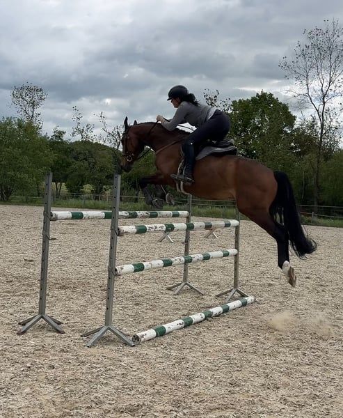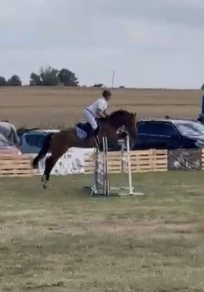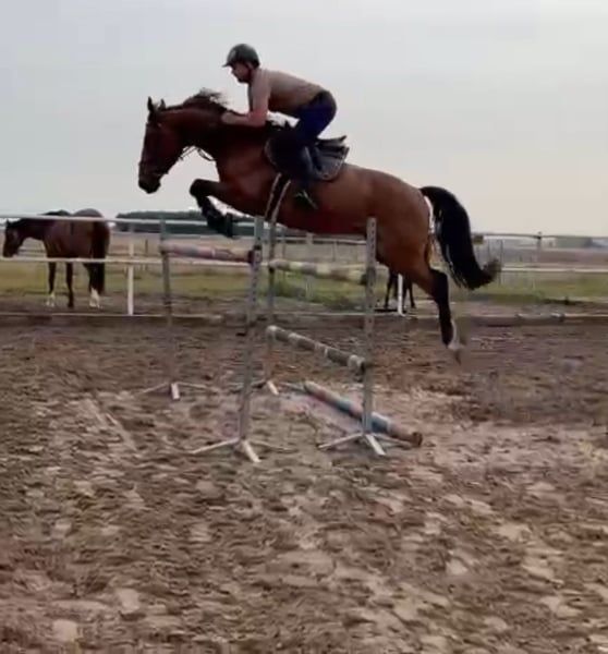 Gagné 1 m en saut, 6 mois de dressage. Il a passé 8 mois en compagnie d'une fille de 15 ans lors de séances de saut. Malheureusement, nous n'avons pas assez de temps. Il saute librement jusqu'à 150 cm, ce qui ne pose aucun problème pour lui. En saut individuel, il a sauté des hauteurs de 120/130/140 cm. C'est un cheval en bonne santé et sans problèmes. Il travaille chaque jour en longe ou en paddock avec d'autres chevaux. Je peux envoyer plusieurs vidéos et informations via WhatsApp si vous le souhaitez.