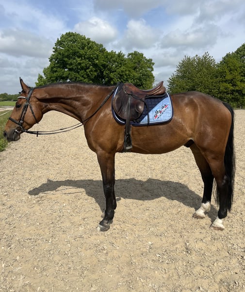 1m gewonnen- 6monate in Training. 8Monate ist er bei Reitbetailigung mit 15 Jahre alt Madchen. Haben wir leider kein Zeit. Im frei Sprung 150cm ist für ihn kein Problem. Unten Reiter gesprung einzeln Sprunge 120/130/140cm. Gesund und Problemlos Pferd. Jeden Tag lauft im Führemaschine und Koppel mit andere Pferde. Mehrere Videos/Infos gerne schicke ich per Whats App