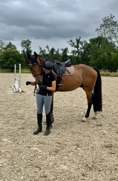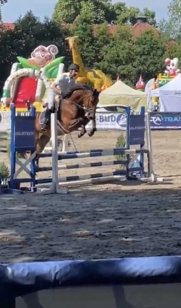 1m wygrane - 1 rok w treningu. Teraz jest przy jeździe z 15-letnią dziewczyną. Niestety nie mamy czasu. W swobodnym skoku 150 cm nie ma dla niego problemu. Poniżej jeździec skacze pojedyncze przeszkody 120/130 cm. Zdrowy i bezproblemowy koń. Codziennie biega na lonżowniku. Miły na pastwisku. Chętnie prześlę więcej filmów/informacji przez WhatsApp.