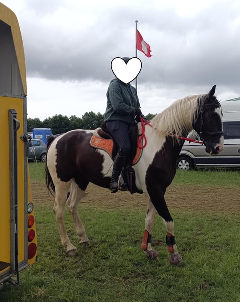 Dyngus (Pablo) - ein 2019 geborener polnischer Sportpferdewallach in der auffälligen und sehr schönen Farbe Rappschecke. Mit einem Stockmaß von etwa 1,70m sowie großrahmigen, harmonischen Gebäude deckt er auch große Reiter gut ab. Er verfügt über eine vollständige Abstammung, ist gesund, PSSM1 n/n getestet und seine kleine Ankaufsuntersuchung vom Juni 2024 war ohne Befund. Aktuell ist er vierfach beschlagen, kann jedoch problemlos auch barhuf gehalten werden. Im täglichen Umgang zeigt sich Dyngus als außergewöhnlich lieber, freundlicher und menschenbezogener Wallach. Er ist ausgeglichen, neugierig, verschmust und lernt sehr schnell. Er verzeiht Reitfehler, lässt sich fein reiten und wird derzeit auch von einer Jugendlichen problemlos geritten. Dyngus ist zudem absolut unkompliziert: Er ist schmiede- und verladefromm sowie brav beim Tierarzt und Hufschmied. In der Herde ist er rangmittig und verträglich mit sowohl Stuten als auch Wallachen. Er lebt im Offenstall bzw. Laufstall und eine artgerechte Haltung mit viel Auslauf und Sozialkontakt wird für ihn weiterhin gewünscht. Unter dem Sattel besitzt er eine solide Grundausbildung. Er geht sicher in allen drei Grundgangarten sowie an der Hand und im Schritt Schenkenweichen / Seitengängen Vorder-/Hinterhandwendung, Rückwärtsrichten etc .Dyngus wird weiterhin gefördert, kennt einige Trail und Working Eqiutation Hindernisse(Brücke, Glockengasse,Tor, Stangenlabyrinth etc) .Er wird Englisch geritten, kennt aber auch den Westernsattel. Er verfügt über viel Geländeerfahrung ( auch in schwierigen + bergigem Gelände). Auch allein ist er souverän unterwegs. Zusätzlich hat er eine zweispännige Fahrausbildung erhalten. Es stellte sich heraus das Kutschefahren nicht seins ist und ihm Stress verursacht. Dies ist auch der EINZIGE Verkaufsgrund, da für die Besitzer aufgrund der eigenen Gesundheit Kutschefahren dem Reiten vorgeht. Ansonsten ist er ein vielseitig einsetzbares, talentiertes Pferd, das bereits an verschiedenen Kursen wie Dressur, Trail oder Working Equitation teilgenommen hat und mit Freude ins Wasser geht. Dyngus ist ein rundum tolles Pferd mit bestem Charakter, schöner Optik und gutem Ausbildungsstand - ein echter Herzenspartner für Menschen, die ein zuverlässiges, lernfreudiges und unkompliziertes Pferd suchen. Weitere Videos können auf Anfrage gerne zur Verfügung gestellt werden.