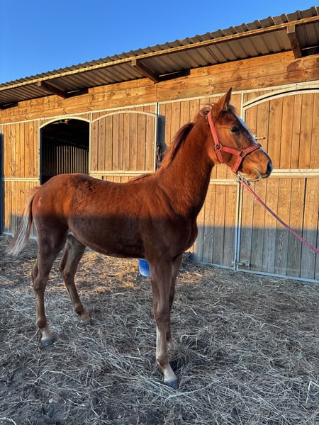 For sale: promising stallion Tornado S, born in 2025. The horse has an excellent conformation, beautiful and elastic movement, and a calm, cooperative temperament. Healthy, well-groomed, and regularly vaccinated. Pedigree: • Sire: Enfant El Baron RC Z • Dam: True Love by Vigo Heywood HZ Tornado S shows great potential as a sport horse — he has the aptitude, a good pedigree, and the right temperament for further training. An ideal choice for those seeking a young horse with talent and a bright future.
