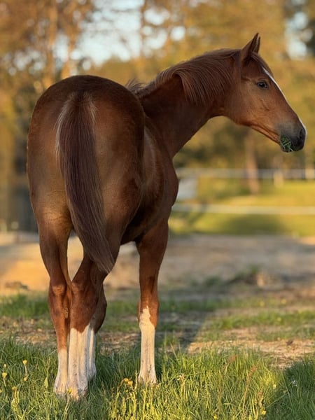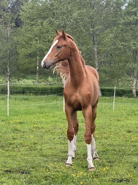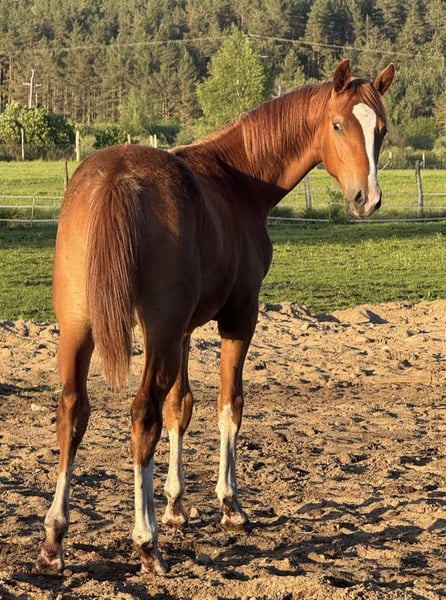 Czarujący młody ogier Dreamer, urodzony w lipcu 2024 roku, pochodzącego z hodowli łączącej najlepsze linie holsztyńskie i trakeńskie. Rodowód • Ojciec: holsztyński ogier Quantum of Solace – zwycięzca MPMK w ujeżdżeniu i WKKW, po słynnym Quarterbacku • Matka: Drzemka – w rodowodzie m.in. ogier Denetor (jeden z najlepszych koni sportowych w Polsce), po Romualdo KWPN i klaczy Darola po Cabrol hol., a w żeńskiej linii także konie z linii trakeńskiej: Arak, Kondor, Aspirant wlkp z dolewem pełnej krwi To połączenie zapewnia znakomity ruch, elegancję i predyspozycje sportowe. Dreamer jest: • Przyjazny i otwarty, łatwo nawiązuje kontakt z człowiekiem • Lubi zabiegi pielęgnacyjne, podaje nogi • Regularnie werkowany i odrobaczany • Zrównoważony, łatwy w prowadzeniu Wygląd i potencjał • Zachwyca urodą i harmonijną budową • Ruch naturalny – lekki, energiczny, z aktywną pracą zadu • Potencjał sportowy: ujeżdżenie i WKKW