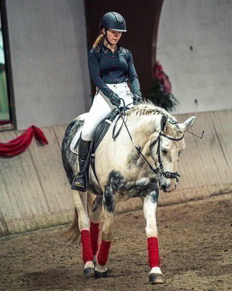 Versatile Partner for Ambitious Dressage and Recreational Riders I am looking for a new home for my 2016-born Polish Warmblood mare, 15.2 hands. She has been in my possession for five years, during which I have personally trained her with patience, time, and love. She is solidly trained up to novice level in dressage, and we are currently working on first-level L-tests. She is eager to work, sensitive to ride, and always strives to please her rider. She also enjoys small jumps. Her greatest strength is definitely trail riding: she is a brave, reliable partner who confidently navigates alone or in a group, making riding simply fun. She has a healthy amount of go, remains clear-headed at all times, and never acts out. At competitions or in new environments, she remains curious, fearless, and well-behaved. She is not a “classic” competition horse in terms of conformation, but impresses with her attitude and character – she always gives her best. In handling, she is very straightforward: she loads well, is calm at the farrier, and easy to handle daily. She is also familiar with children but knows her limits and what she can do with them. She is very social but ranks high in the herd. Health-wise, she is a very uncomplicated horse: she has never been seriously injured or ill in her life. However, she has PSSM2 and requires appropriate management (lots of movement, tailored feeding, blankets, etc.). Currently, she is well-adjusted and in the best condition she has ever been. It is important that her future rider is willing to understand her needs: she clearly shows when she has a bad day – then training should be adjusted or she should be given a break. She should not be ridden by overly heavy riders. She has received regular osteopathic and dental care. Physiotherapy is advisable due to PSSM and should continue – I am happy to share my experience here. She is a real heart horse that gives back so much to her person. Initially, she needs some time to build trust and to be understood riding-wise. Once this connection is established, she is an absolutely reliable, sensitive partner. In short: for people seeking a trustworthy horse with heart. I am not selling her out of necessity – quality over price! No beginners or riding school use. Equipment can be included if desired. A trial ride costs €20. If you are genuinely interested, I look forward to hearing from you. I am happy to share additional photos or videos.
