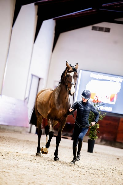 Die Stute ist 13 Jahre alt und hat mich von Turnieren im Bereich von 120 bis 140 cm eingeführt. Sie ist sehr ausgeglichen, angenehm im Umgang und leicht zu reiten. Zudem ist sie sehr gut ausgebildet in der Zäumung, macht seitwärts Bewegungen sowie erste Piaffe-Übungen problemlos. Sie ist nicht schreckhaft und hat keinerlei Probleme, in den Pferdeanhänger zu gehen.