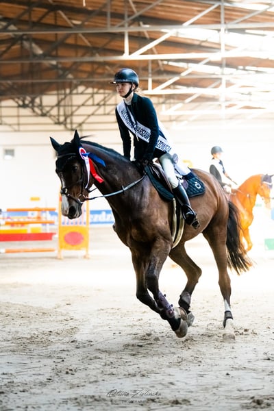 Klacz ma 13 lat i wprowadziła mnie z konkursów od 120 do 140. Jest bardzo równa, przyjemna i łatwa do jazdy, także jest bardzo dobrze zrobiona ujedzeniowo, bez problemowo robi ruchy boczne czy nawet początki piafu nie sprawiają jej problemu. Nie jest plochliwa i nie ma twkze zadnych problemów z wchodzeniem do koniowozu.