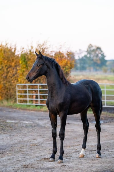 For sale: a one-year-old mare with great potential for dressage, raised in a herd on large pastures. There is an option to keep the mare in training until November 2027. Directly from the breeder.