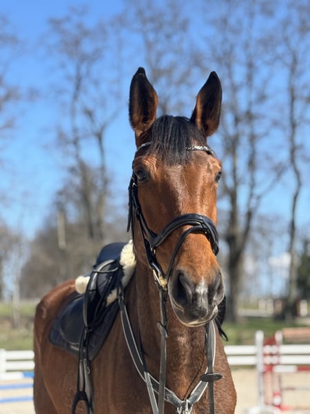 Zum Verkauf steht eine 5-jährige Stute, stammt aus dem Gestüt der Pferde am Wigrami-See – Coco NW. Erfahrungsstand: Coco wurde im Juni 2024 aus einer Zucht gekauft, anschließend vorläufig eingeritten – Schritt, Trab, Galopp, einzelne Sprünge. Sie wurde eine Zeit lang geritten, dann jedoch aufgrund des Rückzugs des Besitzers vom Reitsport vom Training abgezogen. Vor etwas mehr als einem Monat ist sie wieder ins Reiten eingestiegen. Derzeit arbeitet sie im Kontakt, springt einzelne höhere Hindernisse und ist im kleinen Parcours unterwegs. Sie scheut keine Hindernisse oder Bordsteine. Trotz ihres jungen Alters ist sie ein zuverlässiges Pferd. Sie zeigt eine sehr schöne Bewegung – sie ist flüssig, rhythmisch und elastisch. Coco ist ein vorwärts orientiertes Pferd, das dabei sehr ausgeglichen bleibt. Coco ist die ideale Wahl für jemanden, der ein Pferd mit großem sportlichem Potential und gleichzeitig gutem Kopf sucht. Sie hat bisher nur einen Bruchteil ihrer Möglichkeiten gezeigt, da sie bislang keine Gelegenheit hatte, sich vollständig zu entwickeln. Sie ist sicher für einen erfahrenen Reiter, aber auch eine gut reitende Jugendliche, unterstützt durch einen Trainer, wird gut mit ihr zurechtkommen. Coco NW ist ein gesundes Pferd, regelmäßig vom Tierarzt untersucht. Seit ihrer Ankunft bei den Besitzern hatte sie keine Verletzungen (zuvor auch nicht) und zeigt keine Unarten. Das vollständige TUV liegt vor und wurde bei Kauf eingesehen. Sie hat den Test sehr gut bestanden. Es besteht kein Problem, wenn jemand den Test erneut durchführen möchte. Besonders hervorzuheben ist auch die Abstammung der Stute. Sie ist Tochter des Hengstes Poker de Mariposa, der selbst auf 150 cm Springprüfungen unterwegs war. Von seiner Seite stammen fünf Pferde, die auf 160 cm Springen erfolgreich waren, darunter Quidam de Revel und der berühmte Berlin. Die Mutter von Coco ist die Stute Chanel, ebenfalls vom Gestüt am Wigrami-See. Aus ihrer Linie stammen bekannte Springpferde wie Canabis Z, Chin Chin und Contender. Das Pferd steht im Bundesland Niederschlesien, in der Nähe von Glogau. Ich lade Sie herzlich zu einem telefonischen Kontakt oder per SMS ein. Ich beantworte gerne alle Fragen und sende auf Wunsch Videos. Probereiten möglich – vor Ort wirkt das Pferd noch beeindruckender :) Der Verkauf ist dringend, daher ist der Preis verhandelbar.