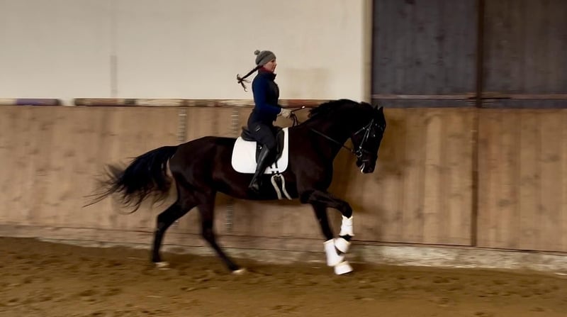 Na sprzedaż przepiękna, kara klacz po ogierze Hickstetstakkato, z matki po Kanndarco. Kiss for Me charakteryzuje się fantastycznym ruchem we wszystkich trzech chodach, ze szczególnie imponującą pracą zadu. Bardzo dobra głowa - chętnie współpracuje z jeźdźcem i szybko się uczy. Niepłochliwa. W pełnym treningu ujeżdżeniowym od grudnia 2025, gotowa do startów na poziomie klasy P, przygotowywana do N. Klacz jest zdrowa (TUV do wglądu). Wzrost około 175cm. Do obejrzenia w Kornicach (woj. śląskie). Kontakt: 505661156