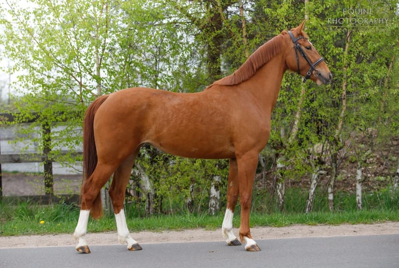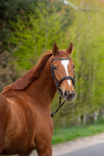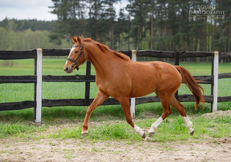 Carmen è una cavalla tipicamente adatta a un solo cavaliere. Quando qualcuno la ama, le dona tutto il suo cuore, portando molta gioia nel trascorrere del tempo insieme. Lo so, perché l'ho comprata da puledra e posso garantire che è la cavalla più fedele del branco, che viene sempre a salutarmi appena mi vede nelle vicinanze. Purtroppo, però, non è fiduciosa con le persone estranee. Questo non deriva da esperienze negative, poiché è sempre stata con me e non è mai stata maltrattata, ma dal suo temperamento nervoso. Per conquistarla, bisogna guadagnarsi la sua fiducia, così da ottenere piena dedizione e obbedienza. È piccola, adatta anche a una bambina alle prime armi con lo sport, a condizione di un impegno da parte sua. Si è molto affezionata a una bambina di 11 anni che vive con noi, e in questa relazione è la cavalla perfetta. Assolutamente non adatta a un maneggio scolastico – quindi, ringrazio fin da ora per tali offerte. Per questo motivo, non la venderò a scopi didattici. Inoltre, è una cavalla in ottima salute. Nulla le manca mai. Da cucciola ha seguito un addestramento professionale di alcuni mesi e ha lavorato come cavalla da dressage, ma a causa del suo carattere, non la propongo come cavalla già montata, poiché sarà sicuramente necessario riprendere l’addestramento. Ha un passo elegante, un temperamento vivace, velocità, salto e tanta energia vitale, quindi vale la pena riprendere con lei gli allenamenti. Testata come madre, è rimasta incinta facilmente e ha allevato il puledro in modo esemplare. In combinazione con un pony, ha dato alla luce una splendida puledra di gruppo D. Da due anni vive con noi al pascolo nel branco. Nel branco, tende a dominare quando non ci sono cavalle più anziane e più grandi; quando ci sono, si comporta come un agnello obedientissimo. È un animale molto intelligente ;)