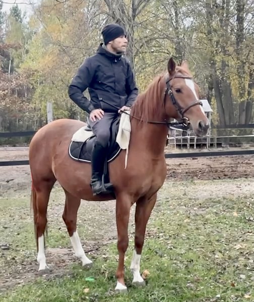 Carmen ist eine typische Einzugsstute. Wenn jemand sie liebt, gibt sie ihr Herz vollständig und bereitet viel Freude durch die gemeinsame Zeit. Ich weiß das, weil ich sie als Fohlen gekauft habe und garantieren kann, dass sie die treueste Pferd im Herde ist, das immer herbeieilt, um sich zu begrüßen, sobald sie mich in der Nähe sieht. Leider ist sie gegenüber Fremden nicht vertrauensvoll. Das liegt nicht an ihren Erfahrungen, denn sie war immer bei mir und wurde nie schlecht behandelt, sondern an ihrem elektrisierenden Temperament. Man muss sich um sie bemühen, um ihre volle Hingabe und Gehorsam zu gewinnen. Sie ist klein und eignet sich auch für ein Mädchen, das gerade mit dem Turniersport anfängt, vorausgesetzt, man engagiert sich auf der anderen Seite. Sie hat sich bei uns sehr mit einem 11-jährigen Mädchen angefreundet, und in dieser Beziehung ist sie das perfekte Pferd. Für eine Reitschule ist sie absolut nicht geeignet – daher danke ich für entsprechende Angebote. Für diesen Zweck werde ich sie nicht verkaufen. Außerdem ist sie ein gesundes Pferd. Nichts kann ihr je zusetzen. Als Dreijährige hat sie mehrere Monate professionell trainiert und war bereits eingeritten, doch aufgrund ihres Charakters biete ich sie nicht als eingerittenes Pferd an, da man sicherlich wieder mit ihr arbeiten muss. Sie hat einen schönen Bewegungsablauf, Temperament, Schnelligkeit, Springvermögen und volle Vitalität, weshalb es sinnvoll wäre, die Arbeit mit ihr wieder aufzunehmen. Sie ist auch als Mutter getestet. Sie wurde mühelos tragend und hat ihr Fohlen vorbildlich aufgezogen. In Kombination mit einem Pony hat sie ein wunderschönes D-Gruppe-Fohlen geboren. Seit zwei Jahren lebt sie mit uns auf der Weide in der Herde. In der Herde neigt sie dazu, zu dominieren, wenn keine älteren und größeren Stuten dabei sind ;) Wenn jedoch andere Pferde anwesend sind, ist sie gehorsam wie ein Lamm. Sie ist ein kluges Tier.