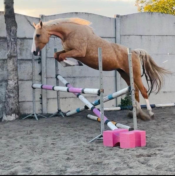 Consider to sell: Great young palomino mare with a lot of white. She was ridden as 3,5 years old and then gave us 2 foals in breeding. Not in foal due 2026. She can be for breeding or riding. Last photos dam, sire and 2 her foals. Directly from breeder. Pedigree with dressage and jumping horses : https://www.horsetelex.com/horses/pedigree/2349047/cinderella-gold-j Other horses: https://sites.google.com/grupadrewnex.pl/palominojaskulscy Facebook: https://www.facebook.com/PalominoJaskulscy