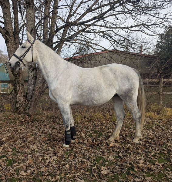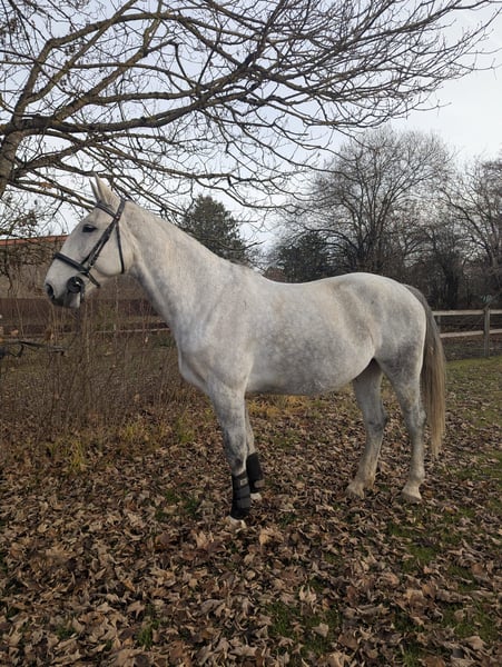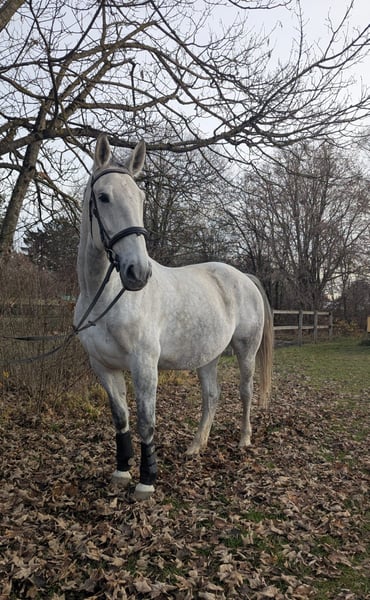 For sale is Gloria, a 7-year-old Polish mare with a strong build and three balanced gaits. She is sensitive to the rider's aids, easy to ride, and trained in dressage at levels E/A and jumping at level E. She is confident and experienced in the terrain, herd-friendly, and uncomplicated when it comes to the farrier and loading. She requires a confident rider who can establish clear boundaries, especially in handling; once this is done, she is very manageable and well-behaved. Due to her dominant nature, she is not suitable for a riding school environment and is being sold well below value. She is healthy and vaccinated.