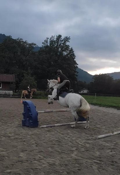 Ich suche für meine 12-jährige Leonharder-Stute Candis (F2) ein neues, passendes Zuhause. Der Leonharder ist eine noch sehr junge bayerische Pferderasse, die hauptsächlich für die Stutenmilchproduktion gezüchtet wird. In der ersten Generation wird der Haflinger (25%) mit dem Welsh-Pony (25%) gekreuzt. Diese Nachkommen werden danach mit PREs (50%) gekreuzt. 2011 wurde die Rasse amtlich zugelassen. Candis braucht eine souveräne und erfahrene Person, die ruhig, konsequent und klar in ihrer Körpersprache ist. Da ich durch meine neue Lebensaufgabe als Mama von zwei kleinen Kindern nicht mehr die Zeit und Energie habe, ihr gerecht zu werden, habe ich mich schweren Herzens entschieden, sie abzugeben. Candis ist eine charakterstarke Stute, die eine sichere Führung und klare Grenzen benötigt, um sich wohlzufühlen. Fehlen diese, kann es beim Führen oder im Umgang zu Unsicherheiten kommen. Ich habe Candis im Alter von vier Jahren übernommen, und in den letzten acht Jahren haben wir gemeinsam viel erreicht. Sie war ein Familienpferd – egal ob bei Ausritten, Spaziergängen mit Kinderwagen, Training auf anderen Anlagen oder im täglichen Umgang. Auch ein 13-jähriges Mädchen ist sie in den letzten drei Jahren regelmäßig geritten. Candis hat ein Stockmaß von ca. 1,50 m, ist regelmäßig geimpft, entwurmt und steht vierfach beschlagen beim Hufschmied. Derzeit lebt sie in Boxenhaltung mit täglichem Koppelgang. Sie ist herdenverträglich, sowohl in gemischten als auch in reinen Stutenherden, zeigt aber gelegentlich ein dominantes Verhalten gegenüber anderen Pferden. Candis ist in der E-Dressur platziert und wurde auch E gesprungen. Sie kann bereits ein paar Lektionen bis M. Im Gelände ist sie – mit sicherem Reiter – sowohl alleine als auch in der Gruppe angenehm zu reiten. Zum Verkauf gehört ihr passender brauner Prestige Monoblatt D1 K Sattel (17 Zoll), ein Zaumzeug sowie weiteres Zubehör. Ich freue mich über Nachrichten von Interessenten, die mir ein wenig über sich und das zukünftige Zuhause von Candis erzählen. Genauere Informationen und Videos stelle ich selbstverständlich gerne bei ernsthaftem Interesse nach Privatkontakt zur Verfügung.