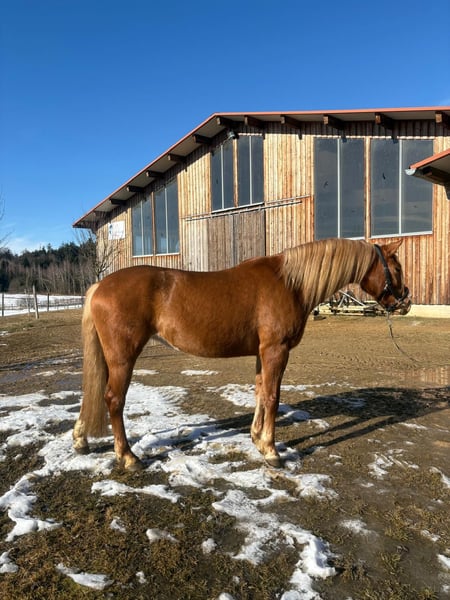 For sale is a stunning Leonharder mare from the F2 generation, born in 2022. She impresses with her elegant chestnut coat and friendly demeanor. With a height of 151 cm, she is ideally suited for leisure riding and demonstrates versatile talent. This charming chestnut mare is perfect for riders seeking a reliable and pleasant horse for recreational activities. Zadorina lives in a herd and is regularly introduced to the farrier. She was gently backed about three months ago and is familiar with the basics. She rides confidently alone in the terrain and also enjoys her time in the indoor arena. Zaforina is a talented jumper and captivates with her curious, sweet, brave, and calm nature. If interested or for further information, please feel free to contact me. A personal meeting is highly recommended!