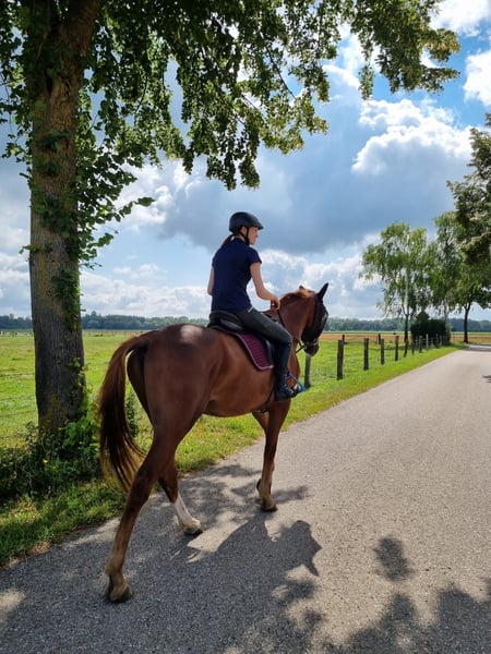 Dioniss is a stunning gelding who impresses with his three wonderful basic gaits and excellent rideability. I bought him just over a year ago, started him myself, and have trained and developed him step by step with great joy. Throughout this process, he has always been curious, motivated, and full of fun at work. In both jumping and dressage, he masters the basic tasks and always shows a willingness to learn. He is also enthusiastic about groundwork, such as pole work. He is familiar with trail riding as well, where he displays interest, bravery, and a consistently positive attitude. Dioniss lives in a small gelding herd in an open stable, but he is also accustomed to a box. He is very people-oriented, friendly, and a loyal partner who always wants to give his best. He is open to new tasks and eager to continue his development. He knows the farrier and behaves well and calmly during the process – he is barefoot. With his excellent pedigree, he brings a lot of potential that wants to be discovered and nurtured. Unfortunately, I have to part with him for time reasons, and I hope to find a partner by his side who recognizes his talent and lovingly supports him on his journey. Since he is still at the beginning of his training, he is not a beginner's horse. If you are genuinely interested, please feel free to send a WhatsApp message or call directly at: 015155564960.