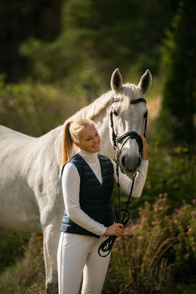 Eine sehr süße und sensible Dame. Leandra ist eine große Persönlichkeit mit einem selbstbewussten Temperament. Perfekt, um eine Freundin zu sein und ein gemeinsames Leben mit einem neuen Besitzer zu genießen. Ich suche eine Person, die sie liebt, sich gut um sie kümmert und ihr ein gutes und glückliches Leben bietet. Leandra erwartet einen ruhigen, aber selbstbewussten Reiter. Leandra kann viele Dinge lehren, indem sie auf intelligente Weise auf Fehler hinweist. - Wohnhaft in Lettland - Körpergröße 160 cm - Gut ausgebildet in Springen und Dressur - Ideal für Wanderritte - Wettkampferfahrung mit klaren und stabilen 110cm. Zu Hause springt er höher - Am besten für die Geschwindigkeitsklassen geeignet - Glücklich zu arbeiten - Gut für Spaziergänge im Wald und am Strand - Kein Problem mit Scheren, Transport oder Schmieden - Ruhig auf der Weide und hat keine Probleme mit anderen Pferden - An neuen Orten ist er ruhig, macht keinen Stress - Kein Problem mit dem Bad - Keine schlechten Angewohnheiten - Klare Röntgenbilder Leandra wäre geeignet für einen stärkeren Junior, jungen Reiter oder Amateur.