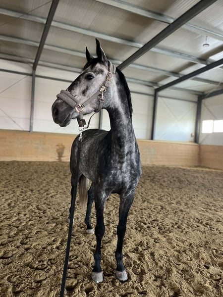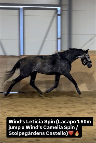 Zmieni dom 6 letnia sportowa klacz ze świetnym potencjałem i światowym pochodzeniem (Lacapo 1.60 m jump FEI x Wind’s Camelia Spin) • 171 cm wzrostu • Sportowa sylwetka, na długich nogach, mocno chwyta za oko wyglądem i ruchem • Miękko nosi, miła do jazdy, dobra głowa • Do koniowozu wchodzi z marszu • Po zawodach i wyjazdach treningowych – nowe miejsca nie robią na niej wrażenia • Bardzo grzeczna w obsłudze, prowadziły i czyściły ją dzieci, przyjacielska, szuka kontaktu z człowiekiem • Bardzo dokładna w skokach, zwinna i uważna, z dobrą techniką skoku, w parkurze równa / do przodu – będzie świetnym koniem do większego sportu • Zdrowa, nie kontuzjowana – bardzo dobry TUV z 2025 roku • Jeździ w tereny • Jeżdżona od początku przez drobną kobietę i nastolatkę na poziomie SOJ – nada się dla jeżdżącego Juniora Tylko w dobre ręce, napewno skradnie serce nowym właścicielom