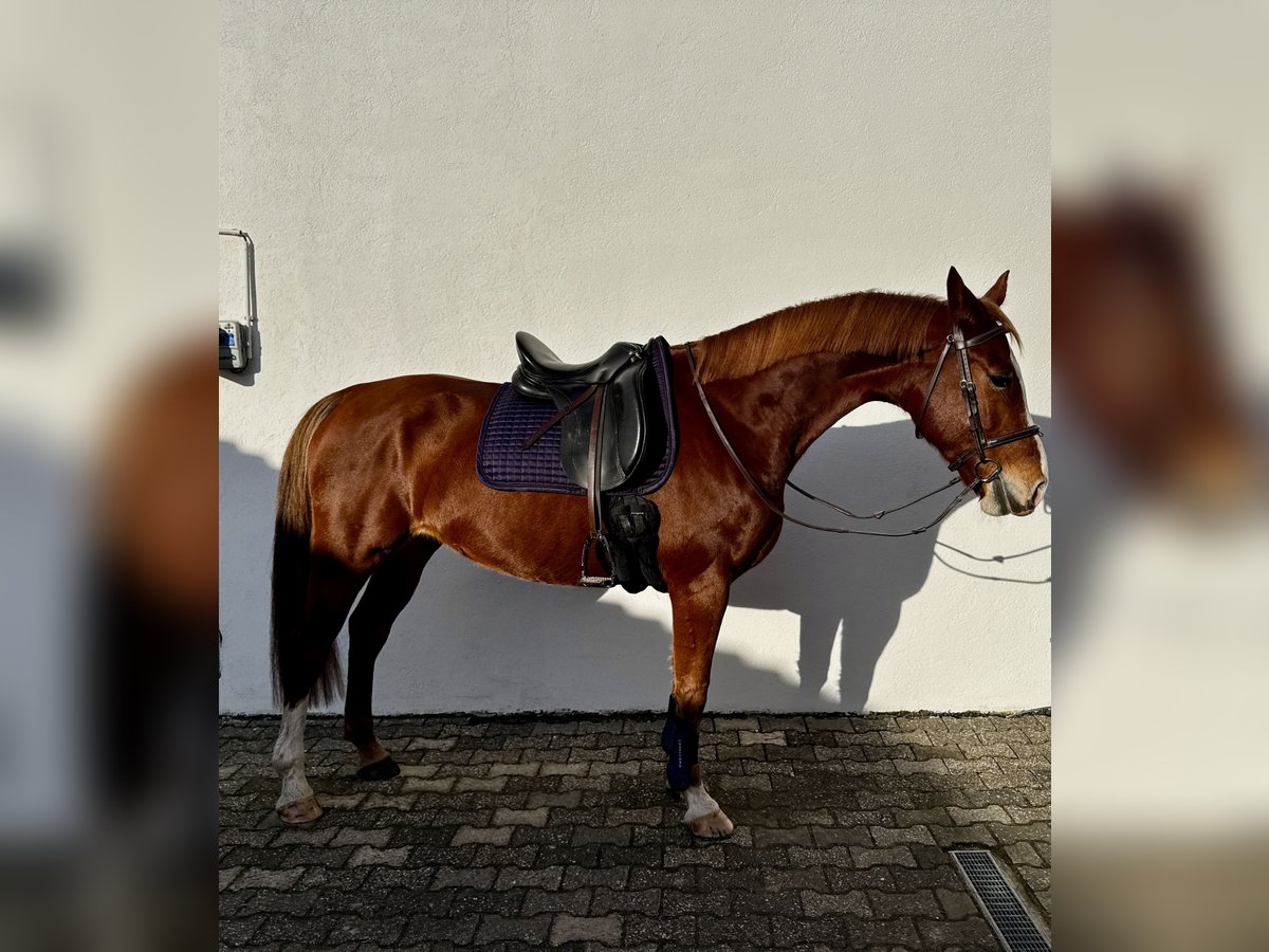 Schweren Herzens suchen wir für unsere 7-jährige Fuchsstute Kata ein neues, liebevolles Zuhause. Kata ist ein Pferd mit viel Potenzial, das in den richtigen Händen eine glänzende Zukunft vor sich hat. Im täglichen Umgang ist sie ein absoluter Schatz. Ob Putzen, Führen oder die allgemeine Stallarbeit – sie zeigt keinerlei Unarten und ist stets angenehm und ruhig. Sie kennt Schmied, andere Tiere, laute Umgebung etc. Sie steht von Sonnenaufgang bis Sonnenuntergang auf einem großen Paddock, Nachts in einer Paddockbox. Sportliche Erfahrung: In den vergangenen Jahren wurde Kata kontinuierlich von Kindern und Jugendlichen geritten und konnte bereits wertvolle Turniererfahrung im Springen sammeln. Sie kennt die Atmosphäre auf dem Platz und hat hier stets einen tollen Job gemacht. Reitunterricht mit und ohne Longe, Bodenarbeit und Ausritte absolviert sie auch sehr erfahren. Aktuelle Situation: Kata wurde zum Teil auch für meine 9-jährige Tochter gekauft. Wir müssen uns jedoch eingestehen, dass wir ihrem Ausbildungsstand und ihrem aktuellen Bedarf (6x die Woche Reiten) nicht mehr gerecht werden können. Kata zeigt sich in den letzten Wochen zunehmend schreckhafter und benötigt einen Reiter, der ihr die nötige Sicherheit gibt, konsequent die Führung übernimmt und sie reiterlich weiter fördert. Diese Aufgabe können wir aus persönlichen Gründen nicht stemmen. Aufgrund ihrer aktuellen Entwicklung ist Kata momentan nicht für Anfänger geeignet. Wir suchen für sie einen erfahrenen Reiter oder eine erfahrene Reiterin, die ihr mit Ruhe und Sachverstand die nötige Sicherheit zurückgibt. Ob für ambitionierte Amateure oder erfahrene Freizeitreiter, Kata hat sicher das Potenzial eine treue Begleiterin zu werden.