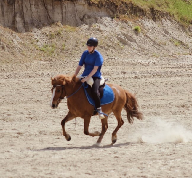 With a heavy heart, I am looking for a new home for my 10-year-old Icelandic gelding Bilbo. He is a 135 cm tall, solidly built chestnut gelding with a lot of presence and a strong personality. Bilbo is well-trained, three-gaited, moves nicely on the bit with good hands, has great jumping potential, and a lot of go. He enjoys hacking, loves trail rides and walks, and also works very happily from the ground – he knows many exercises and tricks. Bilbo has a strong personality and often tests his handler. Therefore, he needs a calm, experienced, and consistent owner who can show him kindly but firmly where to go. He is never mean, remains manageable, and communicates clearly, especially when working seriously with him or when challenged. In handling, he is very sweet, especially with children, dogs, and cats. He is a fun pony that you can do anything with. Currently, Bilbo lives in box stall with daily turnout in a herd of about 20 geldings. He is also familiar with open stalls, 24/7 outdoor turnout, and mixed herds. Health-wise, he is absolutely problem-free: he is regularly vaccinated, has never been ill or lame, and can be easily kept barefoot. Bilbo is located in the Kreis Kleve area and is being rehomed for personal reasons. It is very important to me to find an experienced, loving, and long-term home where his character is appreciated and his potential further nurtured. He could also be suitable for children or less experienced riders, provided there is another person to support and supervise him. Please feel free to contact me with questions or if you are interested.
