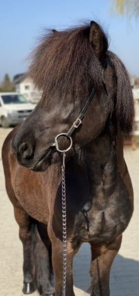 Frakkur van Gavnholt Ruin, 1,42 m groot Zwart zonder aftekeningen Vijfgangster Gezond, eczeemvrij, beslagen, ontwormd Zeer goed opgeleid Sport A gekwalificeerd F1 T2 Kan alle gangdisiplines dekken Deelnemer en finalist op de MEM 2022 in F2 en T4 V: Muni frá Kvistum 8,17 (Ext 7,94 Re 8,31)‼️ VV: Aron frá Strandarhöfði 8,54 (Ext 8,22 Re 8,75)‼️ M: Frökk frá Grenstanga 7,83 (Ext 8,09 Re 7,66) MV: Kormákur frá Kjarnholtum 8,02 (Ext 8,4 Re 7,64) 9,0 voor Pass‼️ Niet elke dag krijg je de kans om een paard zoals Frakkur te kopen. Frakkur is TOP opgeleid. Hij kan werkelijk alles. Omdat wij veel waarde hechten aan klassieke dressuur, is hij ook hierin uitstekend opgeleid en zou hij ook in de dressuurproeven een zeer goede indruk maken. Hij heeft in 2022 deelgenomen aan de Midden-Europese Kampioenschappen in Oostenrijk in de F2 en de T4 en heeft zich direct voor beide A-finale gekwalificeerd. Frakkur is de perfecte leermeester voor de jeugd, hij heeft wedstrijdervaring en is de perfecte combinatie van een plezier- en sportpaard. Doordeweeks kan je met hem ontspannen door het bos tölten en in het weekend over de ovalbaan vliegen in de renpass. De pass is zo eenvoudig te rijden dat hij het minder ervaren passrijders zonder enige moeite aanleert. Toernooistart, trainersexamens, luxe recreatiepaard... hij is echt ALL IN ONE. Hij laat zich alleen en in groepsverband in het terrein rijden en heeft geen problemen met nieuwe omgevingen. Wie Frakkur wil leren kennen en uitproberen, kan dit graag bij ons in A-5221 Lochen am See doen.