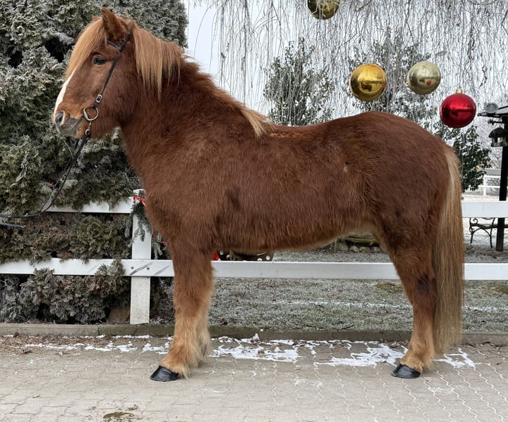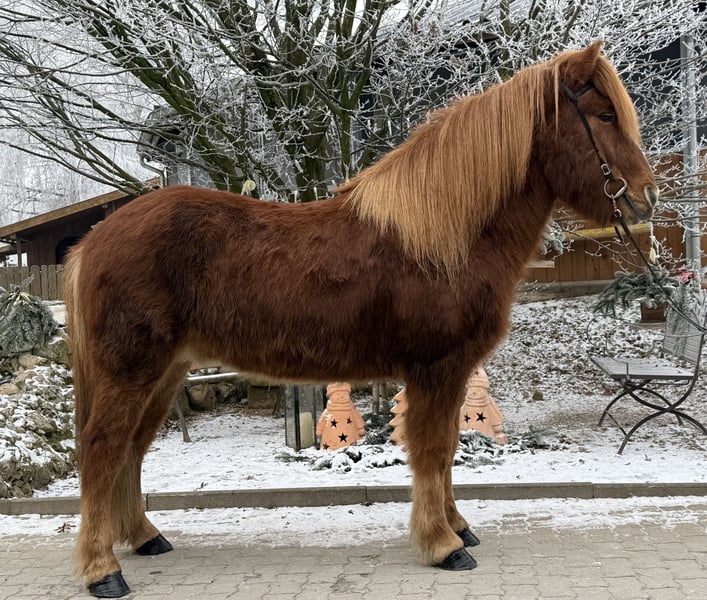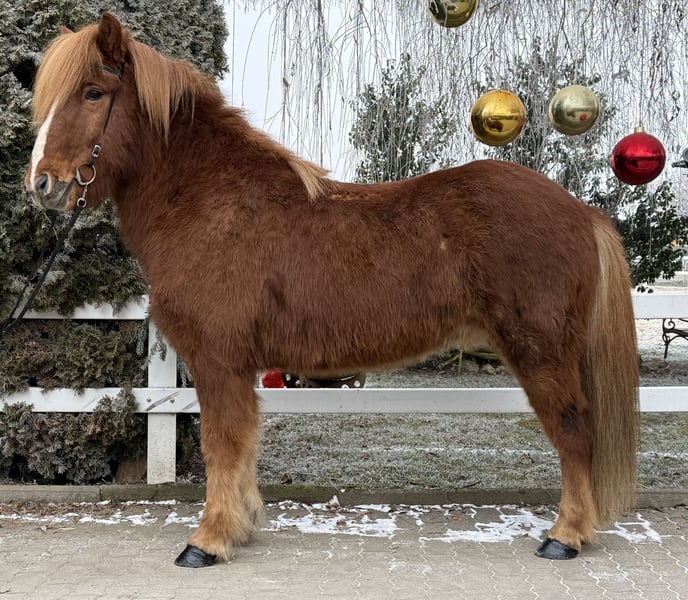 Þróttur frá Skeiðháholti Wallach, 1,45m groß Fuchs mit Blesse viergängig geritten AKU inkl. Röntgen vorhanden✅ MwSt. ausweisbar✅ beschlagen, entwurmt✅ V: Hreyfill frá Vorsabæ 8,54 (Ext 8,50 Re 8,56)‼️ VV: Dugur frá Þúfu 8,49 (Ext 8,39 Re 8,56)‼️ M: Björk frá Skeiðháholti MV: Hilmir frá Sauðárkróki 8,34 (Ext 8,28 Re 8,41)‼️ Þróttur gehört mit seinem Charakter mit zu den ausgeglichensten Pferden, die wir je verkaufen durften. Ihn bringt gefühlt wirklich garnichts aus der Ruhe. Geht man an seiner Box vorbei, steckt er sofort seinen Kopf raus um sich Kuscheleinheiten abzuholen - und um ehrlich zu sein, es funktioniert auch einfach jedes Mal :). Seine Gänge sind ganz einfach zu reiten, klar getrennt und sein Tölt ohne viel Mühe auch von weniger tölterfahrenen Reitern zu reiten. Endlos durch den Wald und über die Wiesen zu tölten, ist das was Þróttur am meisten Spaß bereitet. Aber auch im Viereck/in der Halle möchte er es seinem Reiter immer recht machen und gibt sein Allerbestes. Er zeigt vier gleichmäßig gute Gänge, welche allesamt Taktklar und von guter Qualität sind. Der schöne Fuchs ist mit seinen 1,45m einer der Großen seiner Rasse und kann somit auch ohne Bedenken von Männern geritten werden. Ein Pferd für die ganze Familie eben. Er kennt Hühner, Katzen, Hunde, Kinder sowie Halle, Ovalbahn, Viereck und Gelände. Eine aktuelle Ankaufsuntersuchung inkl. Röntgenbildern sind im Preis inbegriffen. Wer den verlässlichen Wallach kennenlernen und probieren möchte, kann dies gerne nach Absprache bei uns in A-5221 Lochen am See tun. HINWEIS: Wir als Solstadir Austria haben immer mehr Pferde zum Verkauf im Stall, als wir online angeboten haben. Wenn Sie also etwas bestimmtes suchen, dann scheuen Sie sich nicht uns einfach anzuschreiben und uns Ihre Vorstellungen vom zukünftigen Traumpferd zu senden.