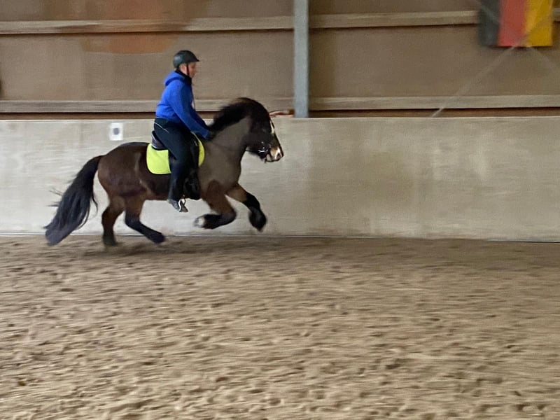 Sell my Icelandic gelding Simba fra Akurgerói, born April 18, 2014 Gelding, dark bay with two blue eyes, 13.5 hh (Sire: Óskasteinn frá Íbishóli) More pictures can be found on Instagram under: Die_ponys_vom_Erdbeerfeld Too good to be true! He comes with full tack. All equipment is in excellent condition. He has a recently fitted Champion Rider Evolution saddle. Includes rain sheet from Sportsfreund, cooling blanket from Sportsfreund, saddle pads, two bridles, halter, rope halter, fly mask, and shipping boots – all included. Sold only due to switching to dressage riding. He is an absolute dream, consistently reliable, a true all-rounder, well-trained, in top condition, and also stunning with a magnificent mane and tail! He handles everything calmly and trusts 100%. NO eczema or other health issues! He lives in a paddock with 24/7 haylage, and in summer, he’s on pasture day and night. My daughters, then aged 8 and 10, learned to ride on him. He was in regular training with Lukas Hiesinger (Hemsberg Stud) for over 5 years. He has participated in numerous clinics with Lukas Hiesinger, Laura Grimm, and Stefan Hackauf (competition judge) under my daughter and me. Currently, he has been in dressage training for a year, twice weekly, with Miriam Weiß (who has competed successfully up to M-level dressage and S-level jumping). He is currently trained up to L-level dressage! He goes into water, children can play on his back, and he loads onto the trailer like a pro. He loves free jumping and is always reliable in the terrain, whether walking or racing at full speed for fun! He is perfect for riding with a halter, extreme trail, indoor arena, outdoor training, oval track, longe line, treadmill, stopping in a beer garden – he masters all effortlessly! Riding alone, competing alone, he remains calm and composed. No fear of cyclists, tractors, traffic, or anything else. Why am I selling such a horse?! My daughter simply developed a different interest and never truly enjoyed the Icelandic horses. Since we want to continue our riding hobby together, I’ve decided to switch back to classical riding without the 4th and 5th gaits. It’s very hard for me to part with him, but now my focus is on a different riding discipline. He deserves a rider who appreciates his versatility and excellent training. Anyone who has had a horse in training knows what good training costs! For me, good training and proper riding have always been essential for his health. He is dewormed three times a year, had a dental check-up on January 27, 2026, and is fully vaccinated against tetanus, influenza, and herpes! Ready for competition immediately. Simba loves free work, circles, and various tricks. He’s a clown who wants to be loved and understood, and then he gives his all for you! For serious inquiries, please call. Trial rides possible at any time!