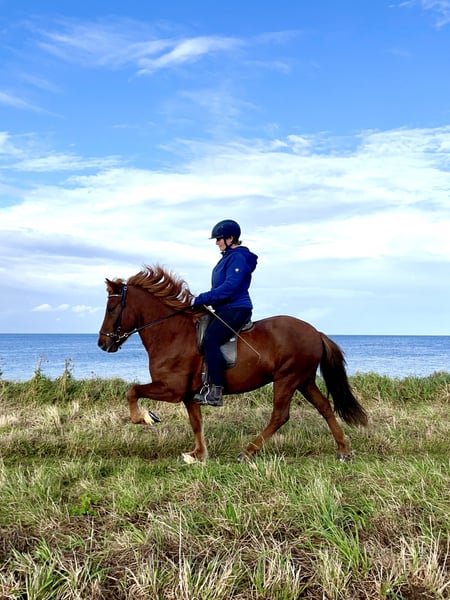 Rúbín ist ein fünfgängig veranlagter Wallach, der viergängig geritten wird. Er ist traumhaft zu reiten, weil er zum einen unbeschreiblich leichtrittig (am kleinen Finger zu reiten) ist und zum anderen so freundlich und lieb ist, dass es eine Freude ist, mit ihm zu arbeiten und ihn reiten zu dürfen. Ein richtiges Luxusreitpferd! Rúbín hat sehr gleichmäßige und dabei schicke Gänge, die alle ganz leicht zu reiten und sicher abrufbar sind. Sein Tölt ist ein Traum und sein Galopp weich und schön gesprungen. Schritt und Trab sind ausdrucksvoll und sicher. Es gibt nichts, was man mit Rúbín nicht machen kann. Durch seinen sehr guten Ausbildungsstand und seine Leichtrittigkeit lässt er sich herrlich dressurmäßig arbeiten oder auf der Ovalbahn in den schicken Gangarten trainieren. Aber am allertollsten ist mit ihm das Reiten im Gelände! Rúbín ist absolut sicher allein aber auch in kleinen und großen Gruppen auszureiten, dabei immer regulierbar und trotzdem fröhlich sprudelnd, auch Straßenverkehr macht ihm nichts aus, er ist einfach eine sichere Bank. Er hat ein mittleres Temperament und macht immer so viel, wie sein Reiter es verlangt. Rúbín ist für viele unterschiedliche Reiter passend: ein ambitionierter Reiter gleich welchen Alters hätte einen wunderbare Partner an seiner Seite, sei es für stressfreies und sicheres Ausreiten, Reitunterricht und Kurse bis hin zu Abzeichen- und Trainerprüfungen oder auch als Partner im Sport. Auch ein Kind mit etwas Reiterfahrung käme mit ihm zurecht. Weil er so gut ausgebildet und fein zu reiten ist, wünschen wir uns für ihn keinen absoluten Anfänger als Reiter. Er wird wegen Studiums von privat im Auftrag verkauft.