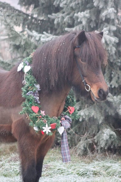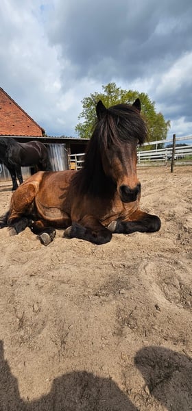 12-year-old Icelandic gelding for sale Approximately 4.8 hands (1.44 m) tall Fagur is a sensitive and very friendly gelding who seeks contact with people – cuddling is one of his favorite activities. He is easy to ride and particularly enjoys going out on the trail. In handling, he is reliable and can be led, groomed, and lunged well by children. However, he is not suitable as a children's riding horse. Fagur has sweet itch, which is well-managed with appropriate care and a protective rug. About three years ago, he suffered a check ligament injury in his hind leg; at that time, he was only allowed to walk for three months, and since then, he has been fully sound again. He is not suitable for beginners, as he can occasionally buck after mounting. He has a sensitive stomach and may react to weather changes, stress, or long fasting periods. Overall, Fagur is a motivated riding horse that aims to please his rider and can bring great joy with empathetic, experienced handling.