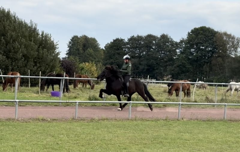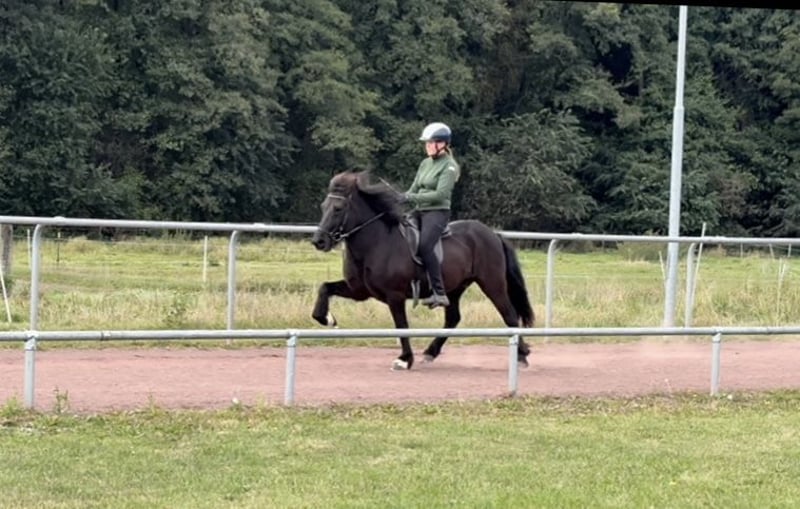 Morgan frá Fornhaga II *2013 in Iceland 1.44m Sire: Bastían frá Litlu-Brekku (FIZO 7.78) Dam's Sire: Kvistur frá Skagaströnd (FIZO 8.58, Honorary Prize for Offspring) Dam: Harka frá Akureyri (FIZO 8.13) Morgan is an absolute gentleman and simply a treasure! He always wants to do everything right and puts in an incredible amount of effort to please the rider. In addition to his excellent character, Morgan also has 5 very stylish gaits. All gaits are easy to ride while maintaining good form, at any speed, and with elegant movements. The tölt can sometimes be a bit stiff, but it can be easily loosened. He is very well trained, responds well to aids, and is very sure-footed in the terrain. With a diligent temperament and calm nature, Morgan always goes as fast as the rider wants. Due to Morgan's sensitive and quick response to the rider's aids, he is not suitable for inexperienced riders despite his dream character. However, pretty much anyone can ride him safely. A great horse for (youth) sports, as a luxury leisure horse, or for trainers' licenses or badges. Morgan is a fantastic all-rounder and does just about anything for his person. Unfortunately, Morgan has developed a slight eczema, which is why he is being sold below his actual value. With a blanket and some care, this is hardly noticeable. Price category D: €15,000 - €20,000 Location: 29614 Soltau Due to increased riding tourism and to avoid this for the horses' sake, I charge a flat fee of €40 per appointment. This will, of course, be refunded upon purchase.