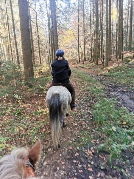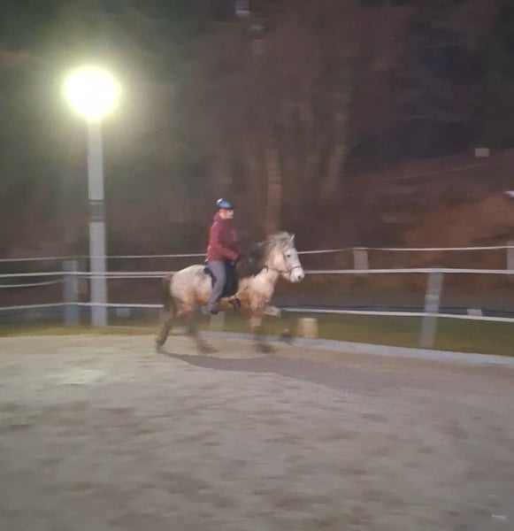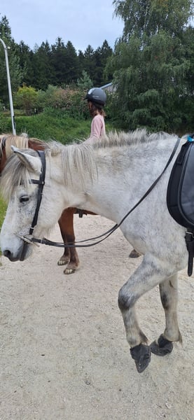 Herjólfur frá Hestheimum geb. 04.08.2012 in Island | Grauschimmel | ca. 1,42 m | 4-Gänger Herjólfur ist ein gut ausgebildetes, solides Freizeitpferd mit viel Geländeerfahrung. Er wurde im Oktober 2023 nach Deutschland importiert und wird hier zuverlässig in kleiner Gruppe oder zu zweit im Gelände geritten. Er verfügt über sehr viel Tölt mit angenehm weicher Bewegungsqualität. Auch sein Galopp ist butterweich und gut zu sitzen. Trab ist vorhanden, seine Stärke liegt im Tölt und im Galopp. Er lässt sich gut über den Rücken und feine Gewichtshilfen reiten und möchte klar, strukturiert und bewusst geritten werden. Etwas Tölterfahrung ist dabei wichtig. Herjólfur hat ein mittleres Temperament und ist aufmerksam, ohne nervös zu sein. Er ist ein treuer, partnerschaftlicher Begleiter, der eine echte Beziehung zu seinem Menschen aufbaut. Im Gelände zeigt er sich zuverlässig. Wenn ihn etwas verunsichert, bleibt er stehen und orientiert sich an seinem Reiter. Auf dem Platz arbeitet er gerne mit, braucht jedoch eine aktive Reiterhand. Er ist kein „Selbstläufer“ – man setzt sich nicht einfach drauf und er erledigt alles von allein. Er möchte geritten werden, möchte Führung und klare Hilfen. Wenn man bereit ist, sich mit ihm zusammenzuentwickeln und ihn gymnastisch zu fördern, arbeitet er motiviert und ehrlich mit. Er ist ein Freizeitpartner für Menschen, die Freude an feinem Reiten, Gelände und gemeinsamer Entwicklung haben. Er ist freundlich, menschenbezogen und kindergewöhnt. Er kennt Bodenarbeit Reitergewicht bis ca. 80 kg. Gesundheitlich ist er gut versorgt: ekzemfrei, steht ohne Ekzemdecke Apfelallergie im Herbst leichte Sensibilität auf Grasmilben (gut regulierbar) regelmäßig geimpft, Zähne gemacht osteopathisch betreut verladesicher und brav beim Hufschmied aktuell barfuß bzw. mit Hufschuhen (zuvor Duplos) Der Verkauf erfolgt aus persönlichen Gründen, die gerne im Gespräch mitgeteilt werden. Ein Reitvideo vom November 25 ist vorhanden. Hery pausierte im Winter und wird nun wieder antrainiert. Herjólfur sucht einen verlässlichen Platz bei einem Menschen, der ihn bewusst reiten und als Partner schätzen möchte.