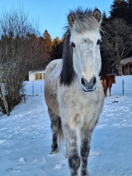 Herjólfur from Hestheimum Born August 4th, 2012 in Iceland | Grey Dun | approx. 14.2 hh | 4-gaited Herjólfur is a well-trained, solid leisure horse with extensive trail riding experience. He was imported to Germany in October 2023 and is reliably ridden here in small groups or pairs in the terrain. He has a very expressive tölt with a pleasantly soft gait quality. His canter is also smooth and easy to sit. Trot is present, but his strengths lie in the tölt and canter. He is easy to ride over the back with subtle aids and prefers clear, structured, and conscious riding. Some tölt experience is important. Herjólfur has a medium temperament and is attentive without being nervous. He is a loyal, partnership-oriented companion who builds a genuine relationship with his rider. In the terrain, he proves to be reliable. If something unsettles him, he will stop and look to his rider for guidance. In the arena, he enjoys working and needs an active, steady hand. He is not a “self-driving” horse—you can’t just get on and expect him to do everything on his own. He wants to be ridden, needs leadership, and clear aids. If you are willing to develop with him and work on his gymnastics, he will work motivated and honestly. He is a leisure partner for riders who enjoy fine riding, trail work, and mutual development. He is friendly, people-oriented, and accustomed to children. He is familiar with ground work. Rider weight up to approx. 80 kg. He is in good health: - Free of eczema, does not require an eczema blanket - Apple allergy - Mild sensitivity to grass mites in autumn (easily managed) - Regularly vaccinated and dental care performed - Osteopathically treated - Loading confident and well-behaved at the farrier - Currently barefoot or in hoof boots (previously Duplo shoes) The sale is due to personal reasons, which can be discussed in detail. A riding video from November 2023 is available. Herjólfur took a winter break and is now being retrained. Herjólfur is looking for a reliable home with a person who wants to ride consciously and appreciate him as a partner.
