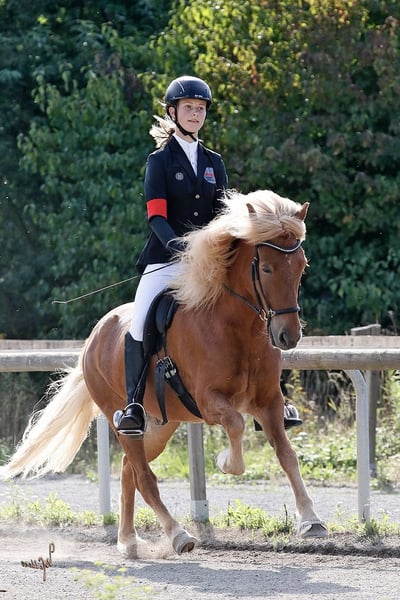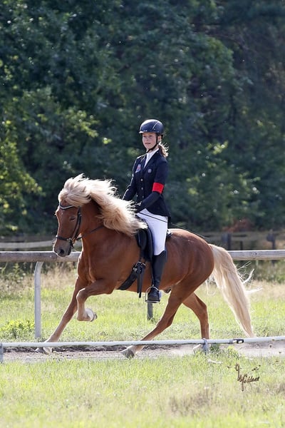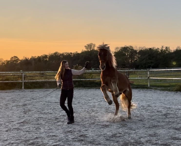 Lokkur est un hongre de 14 ans, doté d’un excellent pas cinq-gaité, d’un caractère exceptionnel et d’une origine prestigieuse (V: Kiljan frá Steinnesi). Il possède une grande expérience en compétition, mais convient également comme partenaire de loisirs de luxe. Son pas de race est facile à monter même pour des cavaliers peu expérimentés. Il possède un galop exceptionnellement bien sauté (notes jusqu’à 7,0) ! En trot, il peut également traverser la forêt à grande vitesse, et son tölt possède une excellente vélocité. Le tölt peut aussi s’effectuer en main détendue, et il a acquis une expérience significative en T4 lors de compétitions. En dressage en liberté, il est très avancé et prend énormément de plaisir à réaliser des figures de cirque (par ex. s’allonger sur commande). Il convient également parfaitement pour le travail en dressage. Très sociable et agréable, il peut être maintenu en paddock collectif sans problème. Il a un esprit très clair, ce qui lui permet de repartir au trot après une course ou un sprint en galop avec d’autres chevaux ou lors d’un passage en pas de race, sans stress. Il est idéal pour des cavaliers d’un niveau intermédiaire à confirmé. Lokkur souffre d’eczéma estival et doit être couvert et régulièrement soigné. C’est pourquoi je le propose à un prix réduit, de préférence dans des régions peu infestées par les moustiques. Après près de 10 années merveilleuses ensemble, je dois malheureusement m’en séparer, car je pars étudier et ne peux pas l’emmener avec moi. Pour toute question ou pour plus d’informations/vidéos, n’hésitez pas à me contacter !