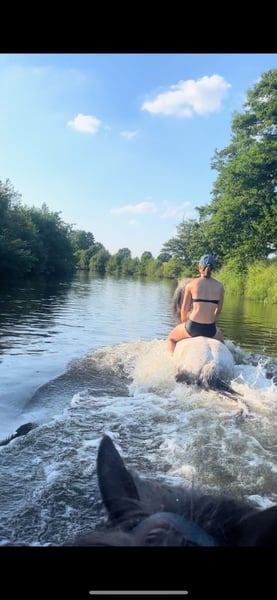 Juli ist ein 2011 Kontinental gezogener Wallach und ca 1,44m groß mit kräftigen Gelenken. Der hübsche Apfelschimmel benötigt einen einfühlsamen Menschen und ist genau das Richtige für einen anspruchsvollen Reiter. Er ist sehr fein ausgebildet und beherrscht zahlreiche Dressurlektionen (Trabverstärkung, Kurzkehrt aus dem Trab, Schulter herein in allen Gangarten, sowie Renverse, Schritttraversale, im Ausbau befindliche Trabtraversale, Außengalopp, Schrittpirouette und im Aufbau auch Galopppirouette, weitere Seitengänge, etc) Er ist Viergänger mit herausragenden Grundgangarten. Der Schritt unglaublich schreitend und mit viel Tempovarianz. Der Trab mit ausgeprägter Schwebephase und hochweiten Bewegungen, so wie deutlicher Tempoverstärkung. Der Galopp schön bergauf gesprungen, lässt sich sehr gut setzen. Ansonsten ist er sensibel und benötigt einen einfühlsamen, fortgeschrittenen Reiter, der weich in der Hand und konkret mit seinen Hilfen ist. Der Tölt ist nicht seine Gangart. Wir haben lange dran gearbeitet, aber er bleibt da leider trabig und es stresst ihn auch. Da er eine leichte Knieproblematik mitbringt (Instabilität), welche wir über Training und Muskelaufbau aber gut im Griff haben, vermute ich, dass der Tölt sich aufgrund der Knie nicht „stabilisieren“ lässt. Ich hab daher entschieden, ihn nur noch dreigängig zu reiten, was auch so beibehalten werden soll. Im Turniersport hat er Noten im Schritt bis 6,0, so wie für Trab und Galopp bis 6,5 bekommen. Wobei wir letztes Jahr kein Turnier geritten sind, ich aber viel Wert auf versammelnde Übungen gelegt habe, wodurch sich seine Gänge noch mal deutlich verbessert haben. Wenn er einem vertraut, kann man auch einiges an Blödsinn mit ihm machen. Im Bereich Zirzensik hat er auch bereits ein paar Dinge gelernt. Ansonsten kennt er Handarbeit, Freispringen, Kappzaum, Doppellonge, Schlepptraining. Er läuft am Fahrrad und beherrscht da auch Tempoverstärkungen im Trab. Er hat ein gutes Vorwärts und bringt viel Lauffreude mit sich. Daher kein Anfänger-oder Kinderpferd und eher für eine Bezugsperson. Juli wird von mir sowohl mit als auch ohne Gebiss geritten. Er wird regelmäßig osteopathisch durchgecheckt, Zähne wurden im Sommer gemacht, halbjährlich geimpft (inkl. West-Nil) und entwurmt. Kennt es auch barhuf zu laufen. Er ist sehr rangniedrig, da muss man etwas aufpassen, dass er genug Futter abbekommt und steht in gemischter Herde. Keine sonstigen Erkrankungen bekannt, ekzemfrei. Denkbar wäre auch ein Tausch gegen ein Verlasspferd mit wenig/ruhigem Temperament, welches auch problemlos von Kindern und Anfängern geritten werden kann (ein Wallach müsste zudem problemlos mit Stuten zusammenstehen können).