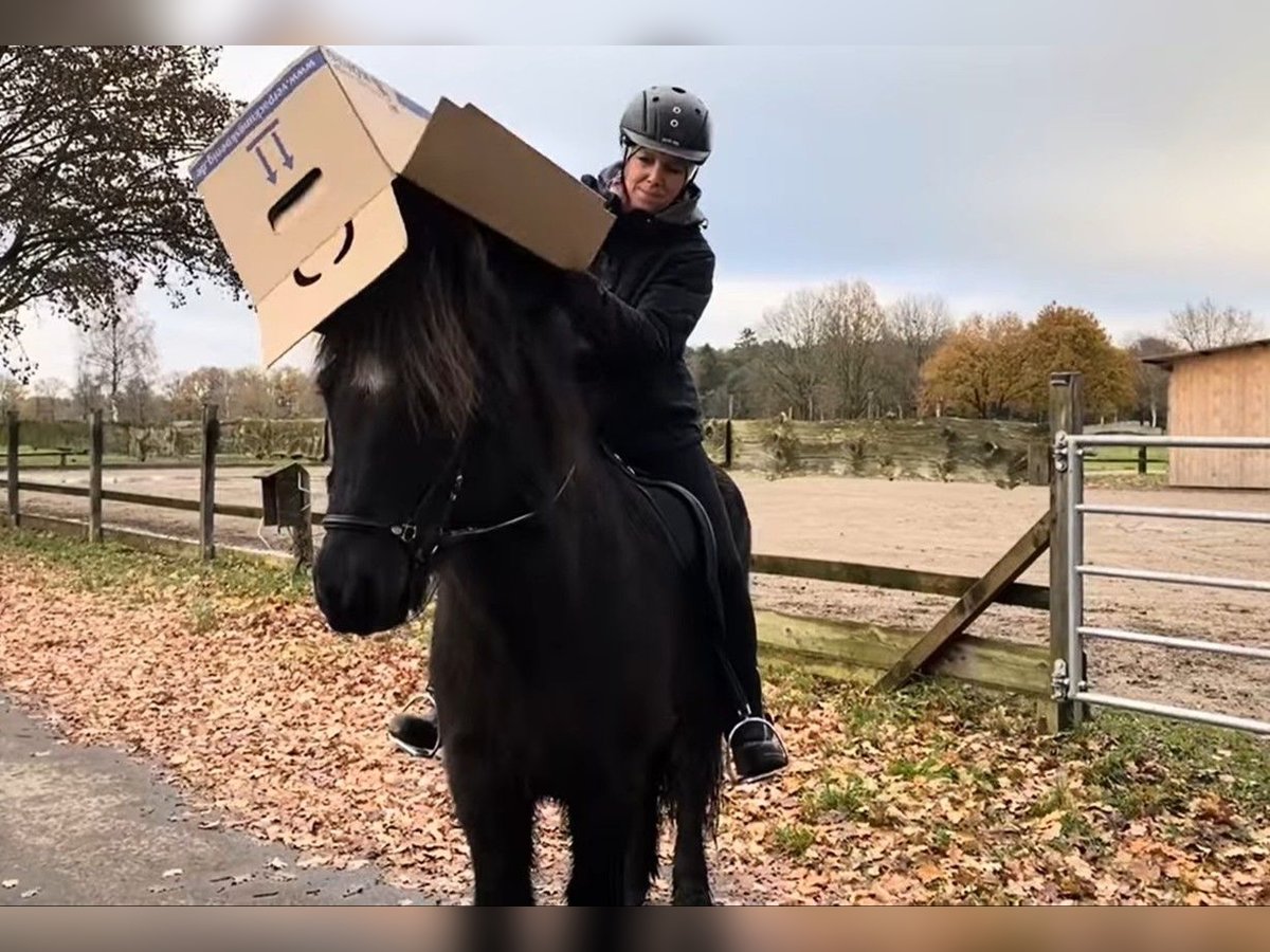IS2011136011 Bubbi du Álftártunga, hongre, noir avec étoile, naturel-tölter, né en 2011, environ 144 cm de haut Bubbi – ce cheval noir incroyablement doux, né en 2011, est un cheval que l’on aime tout de suite. Avec une hauteur d’environ 1,44 m, il est grand, solide, agréable à monter et procure une sensation de conduite très sûre. Il est un cheval à quatre allures avec beaucoup de Tölt naturel – doux, clair, confortable. Il sait naturellement marcher au trot et au galop, mais sa gait préférée reste le Tölt. Son tempérament : calme à modérément énergique, absolument agréable, toujours contrôlable. Bubbi provient d’un élevage islandais de tourisme de haute qualité, où les chevaux sont systématiquement entraînés en hiver et parcourent le haut plateau en été. Il possède donc une grande polyvalence : bases en dressage, longe, réponse fine aux aides, et bien sûr promenade détendue et douce en terrain varié. ✨ Idéal pour • Débutants et cavaliers peu confiants • Reprise après une pause • Enfants, adolescents et cavalières plus âgées • Familles recherchant un cheval totalement fiable Bubbi est un cheval d’une sûreté exceptionnelle : il reste calme face à un sac, une poubelle, des bruits forts, un camion de livraison Amazon, des vélos, une pelleteuse, des voitures qui klaxonnent, une étable à vaches – il demeure amical, détendu, stable. C’est clairement un cheval avec un label SAFE, mérité à plusieurs reprises. Il répond immédiatement à la voix sur “Ho”, reste fiable, peut partir seul ou en groupe en balade, et ramène toujours son cavalier à la maison en toute sécurité. 💛 Bubbi est un cheval qui inspire confiance – et qui redonne le plaisir de monter à cheval. Si Bubbi vous touche autant que nous, n’hésitez pas à nous contacter pour un conseil ou une séance d’essai.