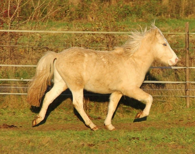 Toekomstige allround betrouwbare familiepony voor recreatie, lessen, sport, therapie en meer zoekt een goede eigenaar. Dreymandi beschikt over alles wat je van een potentiële allrounder mag verwachten. Qua karakter en temperament is hij vrij evenwichtig en rustig, altijd vriendelijk, makkelijk in de omgang en vrij van slechte gedragingen. Ondanks zijn jonge leeftijd is hij tot nu toe echt onbevreesd en kalm. Of hij nu alleen wegloopt van de kudde, in de trailer geladen wordt of alleen vervoerd wordt, of langere tijd op een longeerstand staat, hij blijft rustig. Nieuwe omgeving, nieuwe taak – hij bekijkt alles rustig en bij onzekerheid is hij eerder stoïcijns en blijft liever staan. Dit pakket maakt hem, met de juiste opleiding, tot een betrouwbare partner voor jong en oud. Wat zijn gangwerk betreft, heeft hij veel potentieel en ziet hij er zeer aantrekkelijk uit. Hij behoort tot de goede vijfgangveranlagte paarden, met stap zonder pas. Natuurlijk heeft hij een goede draf met mooie bewegingen en een galop met bergopwaartse tendens. Ook toont hij regelmatig tölten en passage. Video’s van zijn gangwerk zijn recent, hij is voor het eerst in een longeercirkel geweest. Deze is helaas niet vlak en ligt bovendien ongelijk door de hoge grasmat. Door de lichte helling is duidelijk te zien dat hij vooral bergaf töltd en dat hij rijkelijk töltd, vooral bergaf. Dreymandi heeft bovendien de zeldzame speciale kleur goudsabelhelmvlek. In de winter is hij iets lichter van kleur, maar in de zomer prachtig verzadigd goudkleurig, wat hem in combinatie met zijn aftekeningen en blauwe ogen een schitterend uiterlijk geeft. Hij beschikt over volle papieren, is goed verzorgd en sociaal opgevoed. Inclusief inentingen, wormenkuur, hoefverzorging en mineralenvoer. Hij staat momenteel probleemloos en onopvallend in een gemengde kudde. Momenteel bevindt hij zich weer in een iets minder gunstige groeifase, met een hoogte van ongeveer 137 cm schofthoogte, maar hij kan zeker eindigen op ongeveer 139 cm. Hij is stevig gebouwd met een sportief accent en oogt elegant in plaats van lomp. Graag te bezichtigen. Voor meer informatie neem contact op.