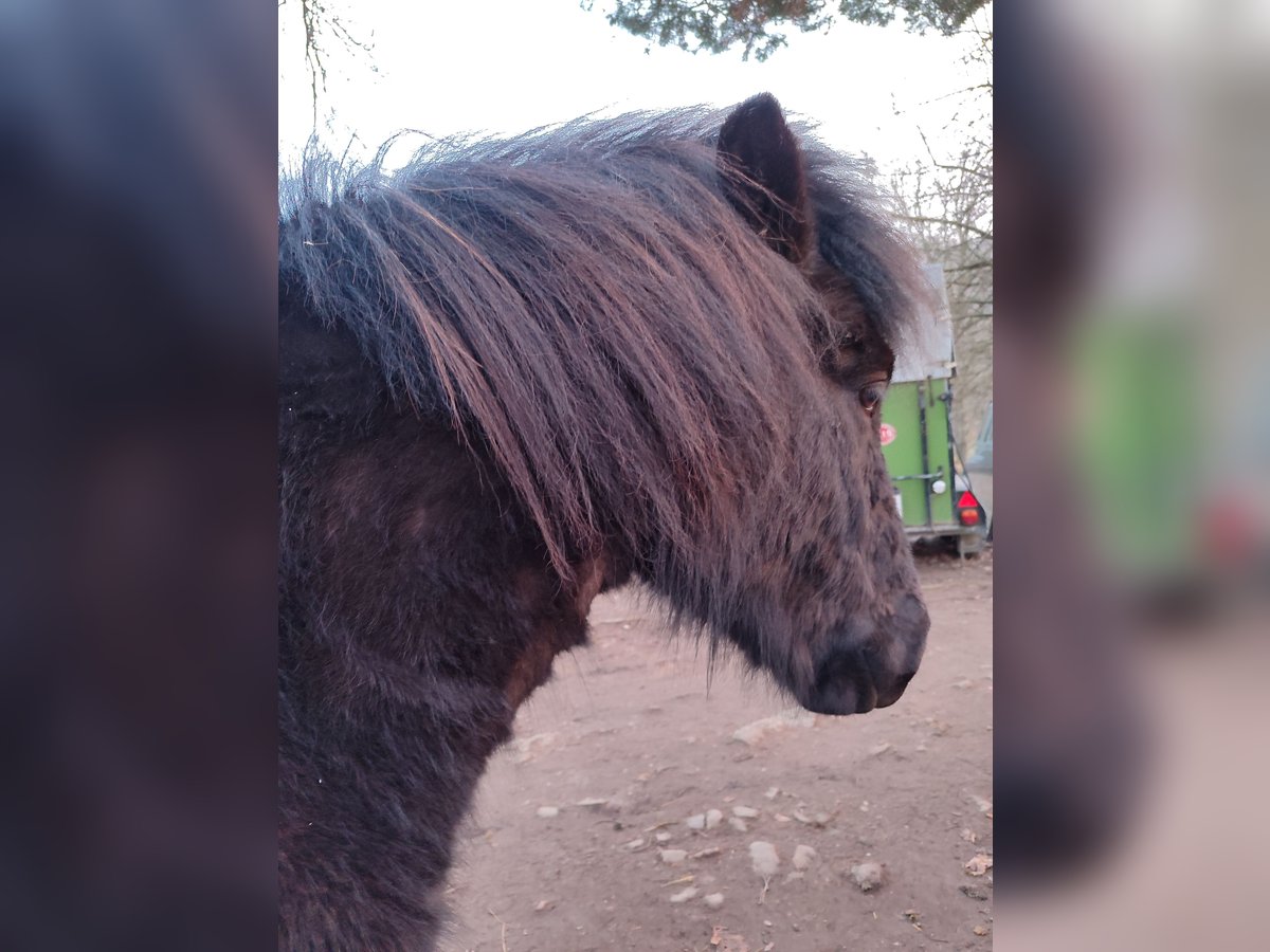 Askur ist ein eher kleinerer dänisch gezogener Wallach mit einer tollen Abstammung. Sein Vater Farsæll vom Hrafnsholt ist ein WM-Teilnehmer, der wiederum von Depill frá Votmula abstammt. Die Abstammung sieht man auch an seinem Tölt, den er in allen Tempi zeigt - von bequem und flach bis hochweit. Trab ist daneben auch vorhanden. Geb 2022 Tiefschwarzer Rappe mit Mega Behang Askur kennt regelmäßige Hufbearbeitung, etwas Bodenarbeit und kleine Spaziergänge, auch alleine, ins Gelände und an der Landstraße entlang. Dabei sind ihm auch Trecker, Wohnmobile, Anhänger, Fahrräder, Motorräder usw begegnet, was er inzwischen gelassen meistert. Aufgrund seines Alters und der Winterpause muss natürlich alles noch gefestigt werden. Neue Dinge findet Askur kurz (Sekunden) gruselig, dann geht er vom selbst neugierig darauf zu, untersucht sie und hat sie anschließend als ungefährlich abgespeichert. Grundsätzlich ist er nicht der sensible Typ, eher derjenige, der gerne diskutiert. In der Herde ist er ranghoch, spielt jedoch auch sehr gerne und fair. Ich suche einen erfahrenen Menschen, der bestimmt aber freundlich Grenzen setzen kann. Die Mutter war so, dass sie alles für ihren Menschen gemacht hat - aber nur für diesen. Er ist gegen Tetanus, Influenza und Pilz geimpft und wurde 3x/Jahr entwurmt. Leider juckt er sich immer mal wieder - eine Diagnose haben wir jedoch dafür nicht, da es etwas unspezifisch ist. Seine Eltern sind ekzemfrei. Er ist mein Traumpferd, den ich als Privatperson extra aus Dänemark importiert habe. Leider zwingen mich familiäre Gründe (Kind wurde zum Pflegefall) zu diesem Schritt. Nur in Offenstallhaltung und Wallachherde Platz vor Preis