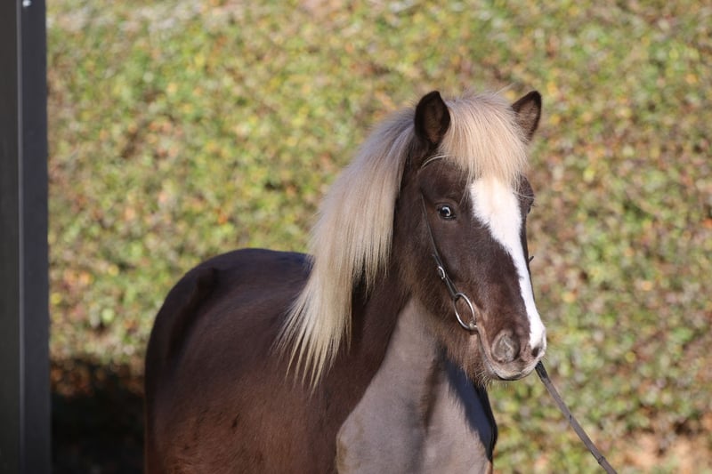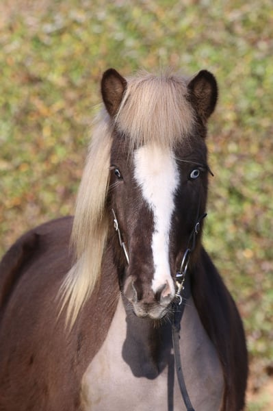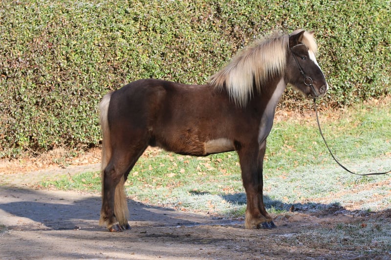 Alvari vom Holtdorftal - DE2021122262 V. Seðill frá Vatnsleysu - 8,14 M. Nös frá Háleggsstöðum Speciale kleur - Vriendelijk - Gehoorzaam - Coöperatief - Geen eczeem - Gemiddeld temperament Alvari is een vriendelijke, fijne jonge ruin met een uitzonderlijke kleur. Hij is een windkleur met een bles en heeft een blauw en een bonte oog (birk-oog). Hij is in 2021 in Duitsland geboren en heeft geen eczeem. Alvari heeft een goede en degelijke basisopleiding gehad. Roaske werkt sinds midden augustus met hem. Hij heeft duidelijk onderscheiden gangen en toont veel tölt. Hij wordt momenteel vooral op de piste en in de bak gereden en van de grond gewerkt. Hij is gewend om als handpaard mee te lopen. Tijdens het werk is hij coöperatief en vriendelijk. In de omgang is Alvari beleefd, attent, nieuwsgierig en lief. Alvari is braaf bij het laden, bij de hoefsmid en de dierenarts. Hij is in groepsverband opgegroeid en is vriendelijk naar andere paarden. Voor wie past Alvari: Een gevoelsvolle ruiter die het leuk vindt om Alvari met liefde en geduld verder op te leiden. Stokmaat: 1,38 m Voor meer informatie: Hjerke 0049-151-40709772