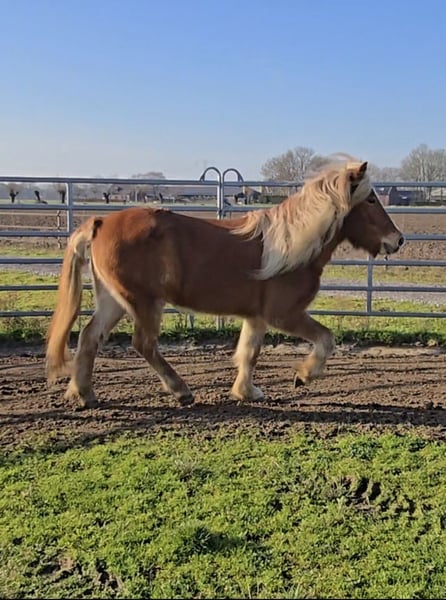 NL2021100035 - Jóvindur frá Gróskuholti 5-jähriger Wallach (im Mai wird er 5), gut gerittene Töltpferd mit langen blonden Mähne und Schweif, BLUP 103 BLUP 105 für Tölt! Vater: IS2010155344 - Eldur frá Bjarghúsum (Ein hochgeprüfter isländischer Hengst mit einer 9 für Tölt, Trab, Galopp und Charakter!!) Vater mütterlicherseits: IS2009187197 - Glói frá Þorlákshöfn (Hohe Punktzahlen in V2 und Töltprüfungen) Jóvindur hat das Aussehen und ein vorbildliches Temperament. Er ist ein sehr anhängliches, äußerst menschenbezogenes, offenes, ehrliches, neugieriges und kooperatives Naturtölter. Er lässt sich nicht schnell beeindrucken, ist sehr cool im Kopf. Er ist nicht dominant, auch nicht in der Herde, sehr folgsam und treu, kommt immer auf Zuruf. Brav beim Hufschmied, Tierarzt und Zahnarzt, Impfungen sind auf dem neuesten Stand, regelmäßig entwurmt. Er kennt das Anstehen, liebt Putzen und Pflege. Er ist leicht auf den Trailer zu laden und läuft immer ordentlich an der Führleine mit. Jóvi ist momentan ca. 1,39 m groß und wächst noch, wir erwarten mindestens 1,40 m. Er ist kräftig gebaut und ein Gewichtsträger. Im Offenstall zeigt er alle Gangarten, er hat vier gut abgegrenzte Gänge und einen guten gesprungenen Galopp, seine Lieblingsgangart ist Tölt. Jóvi ist bereit für den nächsten Schritt in seiner Karriere. Wir suchen für ihn jemanden, der gemeinsam mit ihm weiter wachsen und ihn ausbilden möchte, um schöne Töltfahrten zu unternehmen. Auch bei Wettkämpfen wird er in Zukunft eine gute Figur machen, angesichts seiner Abstammung und seines Aussehens. Jóvindur hat sich letzten Sommer leichtes Schweifekzem zugezogen, das aber mit einer Decke gut in den Griff zu bekommen ist. Preis für Jóvindur: 8.000 Euro Möchten Sie diesen „golden boy“ live sehen oder mehr Informationen erhalten? Kontaktieren Sie uns gerne: jockeylin@planet.nl