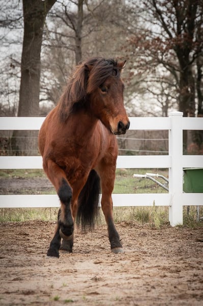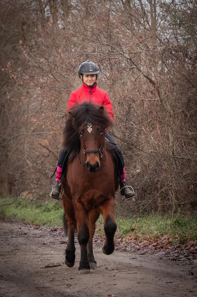 Beschreibung: Wunderschöner 5-jähriger Wallach mit Traumcharakter. Klokkur vom Kranichtal ist ein wunderschöner fünfjähriger Wallach mit einem außergewöhnlich angenehmen Charakter. Von Anfang an zeigt er sich sehr abgeklärt, freundlich und dem Menschen zugewandt. Er ist unkompliziert im täglichen Umgang, aufmerksam und stets bemüht, alles richtig zu machen. Exterieur: Er ist groß und kräftig gebaut, dabei kompakt und mit sehr guten Proportionen. Durch seinen harmonischen Körperbau ist er ein angenehmer Gewichtsträger. Charakter: Klókur überzeugt durch sein ruhiges, kooperatives Wesen. Er ist sehr lernwillig, arbeitet gerne mit dem Menschen zusammen und zeigt sich stets zuverlässig und ausgeglichen. Sein freundlicher Charakter macht ihn zu einem echten Partner im täglichen Umgang. Gänge: Klókur ist ein schöner Viergänger mit gut getrennten Gängen und angenehmem Takt. Er lässt sich bequem reiten und bringt bei weiterer Ausbildung durchaus Potenzial für den Jugendsport mit. Ausbildungsstand: Klókur hat die Grundausbildung bereits absolviert und ist eingeritten. Er kennt Halle, Reitplatz sowie das Gelände und zeigt sich dabei stets brav, aufmerksam und kooperativ. Durch seine Lernbereitschaft lässt er sich sehr gut weiter fördern. Wer passt zu mir: Durch seinen ausgeglichenen und unkomplizierten Charakter passt Klókur ideal in eine Familie. Er eignet sich sowohl für Freizeitreiter als auch für Jugendliche mit sportlichen Ambitionen. Aufgrund seiner Statur ist er auch gut als Gewichtsträger geeignet und wäre perspektivisch ebenfalls für Reitschul- oder Therapiebetriebe denkbar. Vater: Außergewöhnlicher Fünfgänger. 3-facher WM-Teilnehmer. Naddur vom Schluensee ist ein großer Fizo-Elite geprüfter Rapphengst, der seine hervorragende Qualität auch schon bei etlichen nationalen wie internationalen Meisterschaften bewiesen hat. 2015 und 2017 startete er auf der Weltmeisterschaft. Aber nicht nur er selbst ist hocherfolgreich im Sport unterwegs gewesen, auch seine Nachzucht kann sich schon mit Meisterehren schmücken (unter anderem die deutsche Meisterin im Töltpreis Náttrun vom Forstwald). Zudem verfügt Naddur über einen außerordentlich freundlichen Charakter, den er seinen Nachkommen mitgibt. Mutter: Wunderschöne, leichtfüßige Tölt-Tänzerin, wir nennen sie auch unsere Ballerina. Kolka überzeugt durch ihr ansprechendes Exterieur, ihre Leichtrittigkeit sowie ihren freundlichen Charakter. Pflegezustand: Klókur befindet sich in einem sehr guten Futter- und Pflegezustand. Sonstiges: Er stammt aus einer ekzemfreien Elternlinie und ist selbst ebenfalls ekzemfrei.