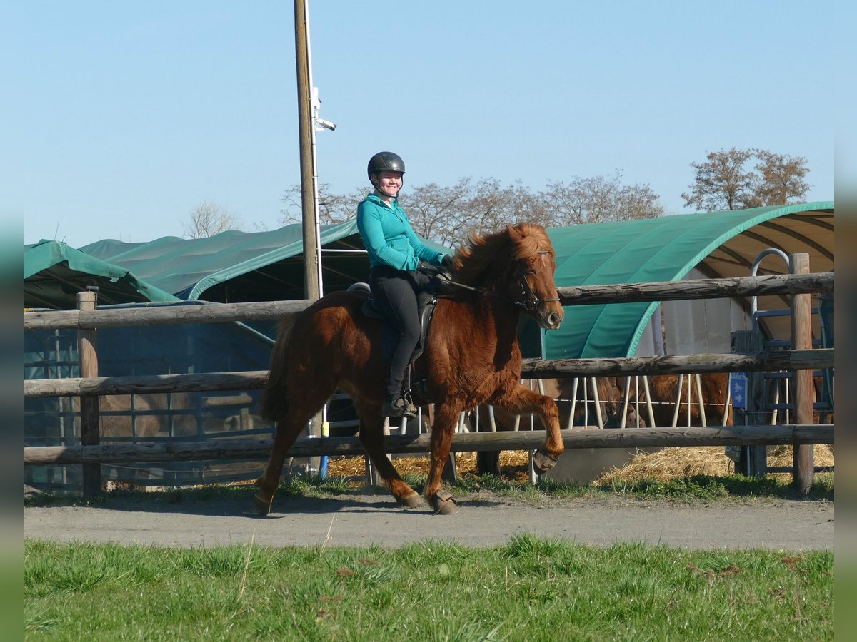 Rubin – a wonderful Icelandic horse for further training 😊 Rubin has recently begun his training as a riding horse and is showing himself to be brave, eager to learn, and reliable! He displays a good amount of trot and tölt and is currently classified as a four-gaited horse. He has a smooth, expressive trot that already responds well to the rein. His tölt is relaxed, elastic, and it is evident that he will develop excellent gait quality. This young gelding is very affectionate and brings real joy to daily work: the perfect combination of lively willingness to work and patient learning. He is well-behaved at the blacksmith, is familiar with dogs, tractors, and all the hustle and bustle at the pony farm. Rubin is at the beginning of his journey as a riding horse, and we are absolutely confident that he will become a versatile all-rounder with a dream character...(and he already is!) Therefore, he is currently suitable for an experienced rider. However, as he is still in training, this may change.
