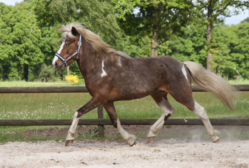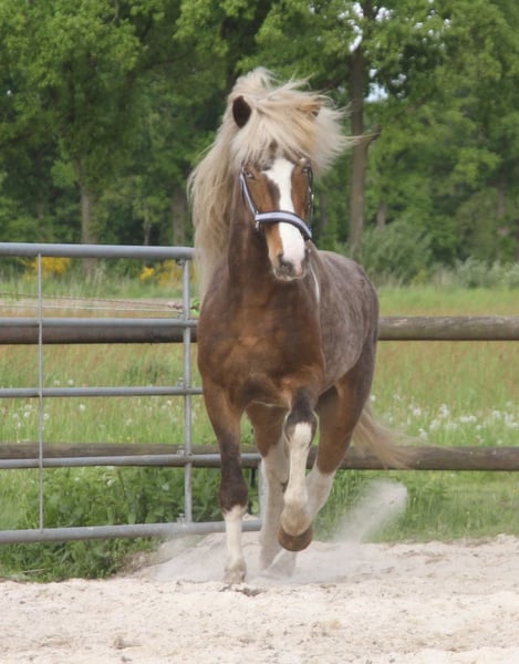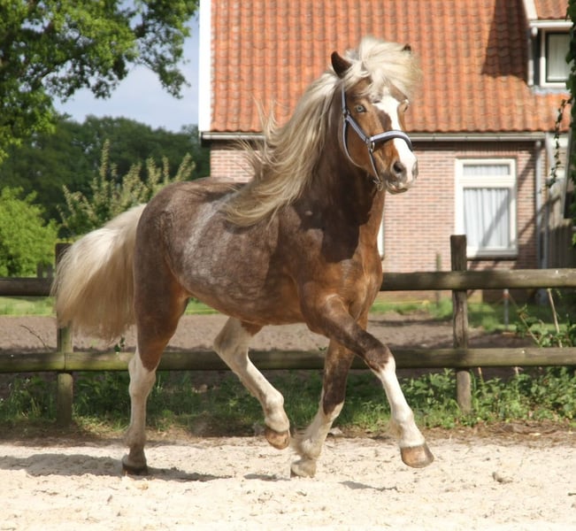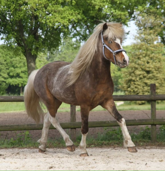 Vaskur van Derkingshof is ingeschreven in stamboek 2 van het Westfaals paardenstamboek en heeft prachtige nakomelingsfoals gekregen die mooi getekend zijn. Vaskur is windfarben, volledig dekkend voor een schildpad met twee lichtblauwe ogen. Hij is recent goed aangelegd en loopt graag in een groep of alleen het terrein in. We kunnen ons Vaskur ook goed voorstellen als koetierpaard, omdat hij zich zeer terreinzeker toont. Op verzoek kan hij gecastreerd worden. Voor meer vragen staan wij graag per e-mail of WhatsApp tot uw beschikking. Meer paarden vindt u op onze website www.roettgershof.jimdo.com
