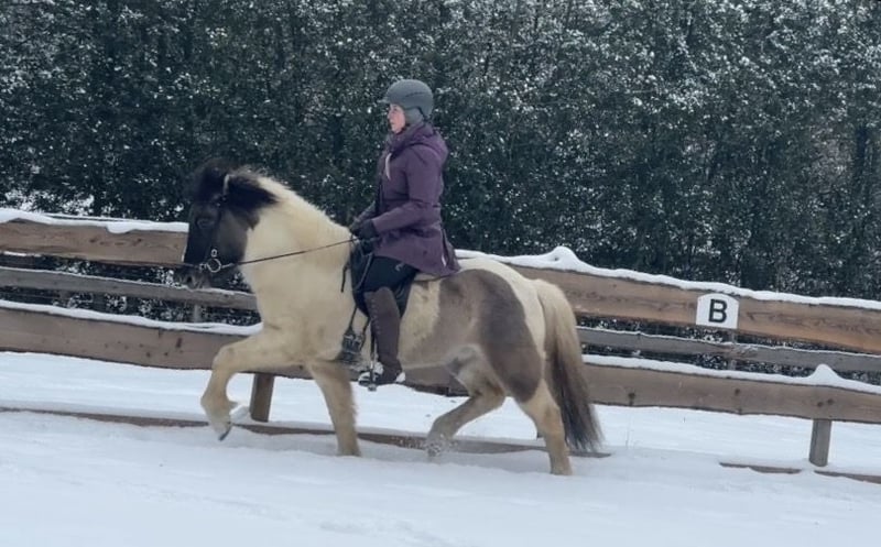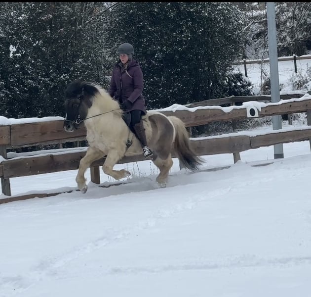 Alskær von Wildenburg-Hofstadt Geb. 2020 Fünfgang Wallach Mausfalbschecke M: Von V: Erill frá Nedra-Seli Alskær ist ein hübscher,5-jähriger Fünfgang Wallach der sich gerade in der Ausbildung befindet. Unter dem Sattel zeigt er gute Grundgangarten, sowie Tölt bei stets gutem Takt und gutem Vorwärtsdrang. Er geht sicher alleine und in der Gruppe. Selbstverständlich ist er Schmiede und verladefromm und kennt reiten in der Halle,auf der Ovalbahn und natürlich Gelände. Wer einen Freund fürs Leben sucht ist bei Ihm genau richtig. Er ist interessant für einen guten Reiter, der ein vielseitiges, verlässliches Pferd mit Potential sucht.