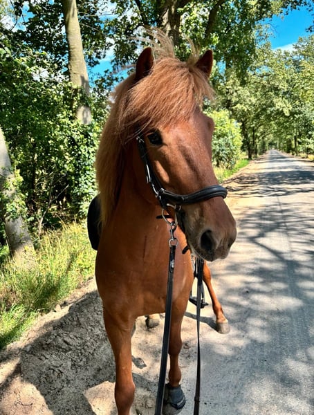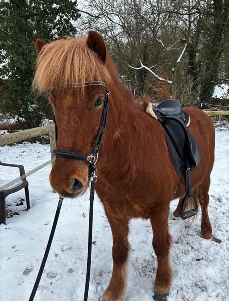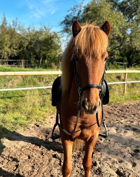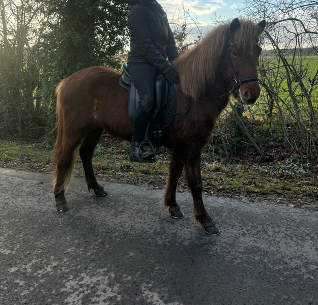 Fagur ist ein 7-jähriger, 140 cm großer Isländerwallach. Er ist auf dem Barghof in einer großen Herde aufgewachsen und stand seitdem stets in einer Wallachherde. Dort zeigt er sich sehr verträglich und in reiner Isländergesellschaft absolut unkompliziert. In einer gemischten Herde mit Großpferden übernimmt er gerne die Chefrolle, dieser Aufgabe ist er allerdings nicht immer gewachsen. Es tut ihm gut, wenn ein anderes Pferd diese Position übernimmt. Fagur ist viergängig geritten. Sein Tölt ist stets taktklar mit schöner Bewegung, egal ob im Gelände, auf dem Platz oder auf der Ovalbahn. Anhängerfahren meistert er problemlos. Er ist ein toller Kumpel für gemeinsame Abenteuer und bringt sicher auch Potenzial für den Turniersport mit. Er verfügt über ein mittleres Temperament, ist stets freundlich und der Arbeit gegenüber sehr positiv eingestellt. Ich kann ihn mir gut für Jugendliche oder ambitionierte Erwachsene vorstellen. Da Fagur sehr klug ist, braucht er einen sicheren und konsequenten Reiter, der ihm klar zeigt, wo es langgeht. In der Vergangenheit hat er bei unsicheren Reitern versucht, seine Grenzen auszutesten. Bei Reitern, die sich davon nicht verunsichern lassen, ist das jedoch überhaupt kein Problem. Für ängstliche oder ungeübte Reiter ist Fagur daher nicht geeignet. Da es uns sehr am Herzen liegt, den passenden Menschen für ihn zu finden, ist der Preis Verhandlungssache. -sowohl beschlagen als auch barhuf möglich, da er eine sehr gute Hornqualität hat. Derzeit läuft er mit vier Eisen, ist aber das letzte Jahr problemlos ohne Eisen gelaufen.